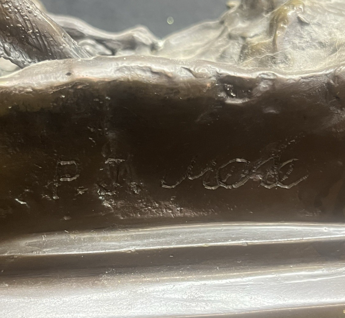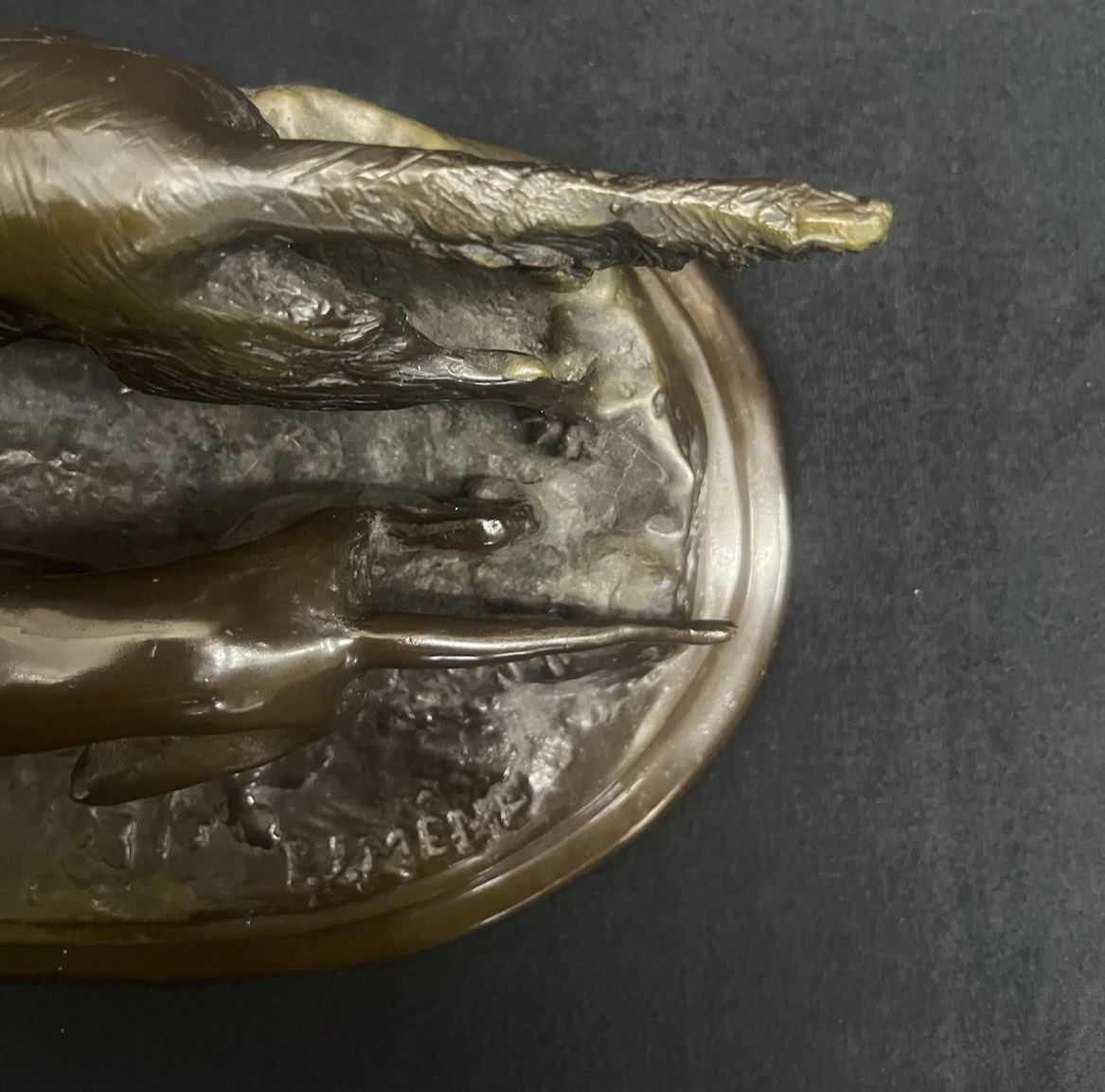 Signed Pierre-Jules PJ Mêne Bronze Hunting Hounds Dogs Duck Sculpture 16" PB10
