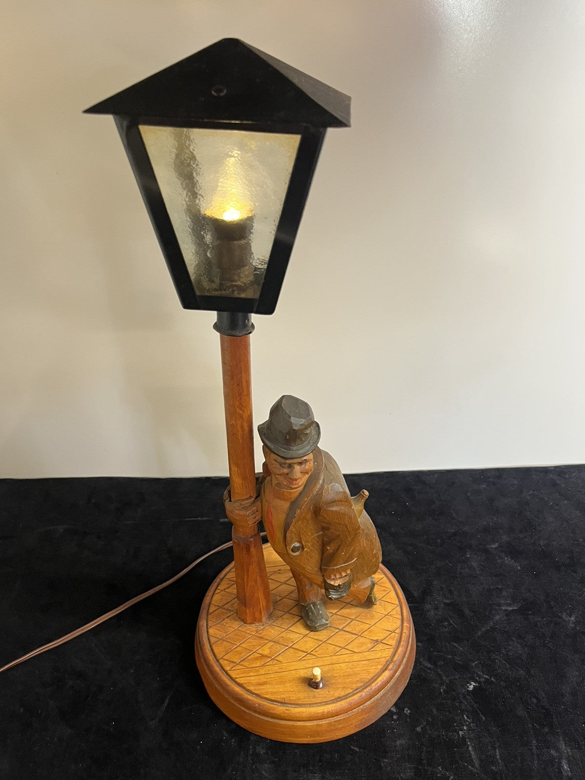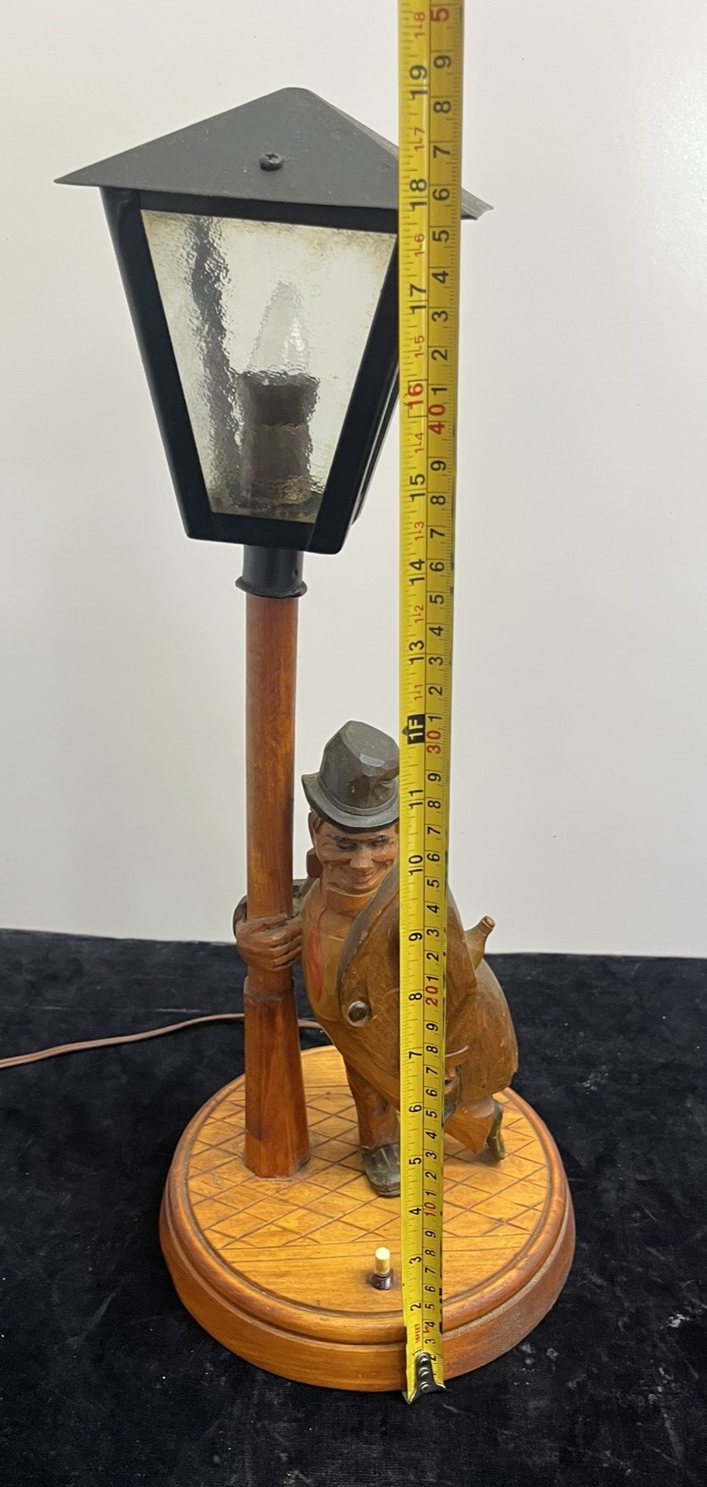 Solid Wood Carved German Table Lamp Karl Griesbaum Hobo Drunk Street