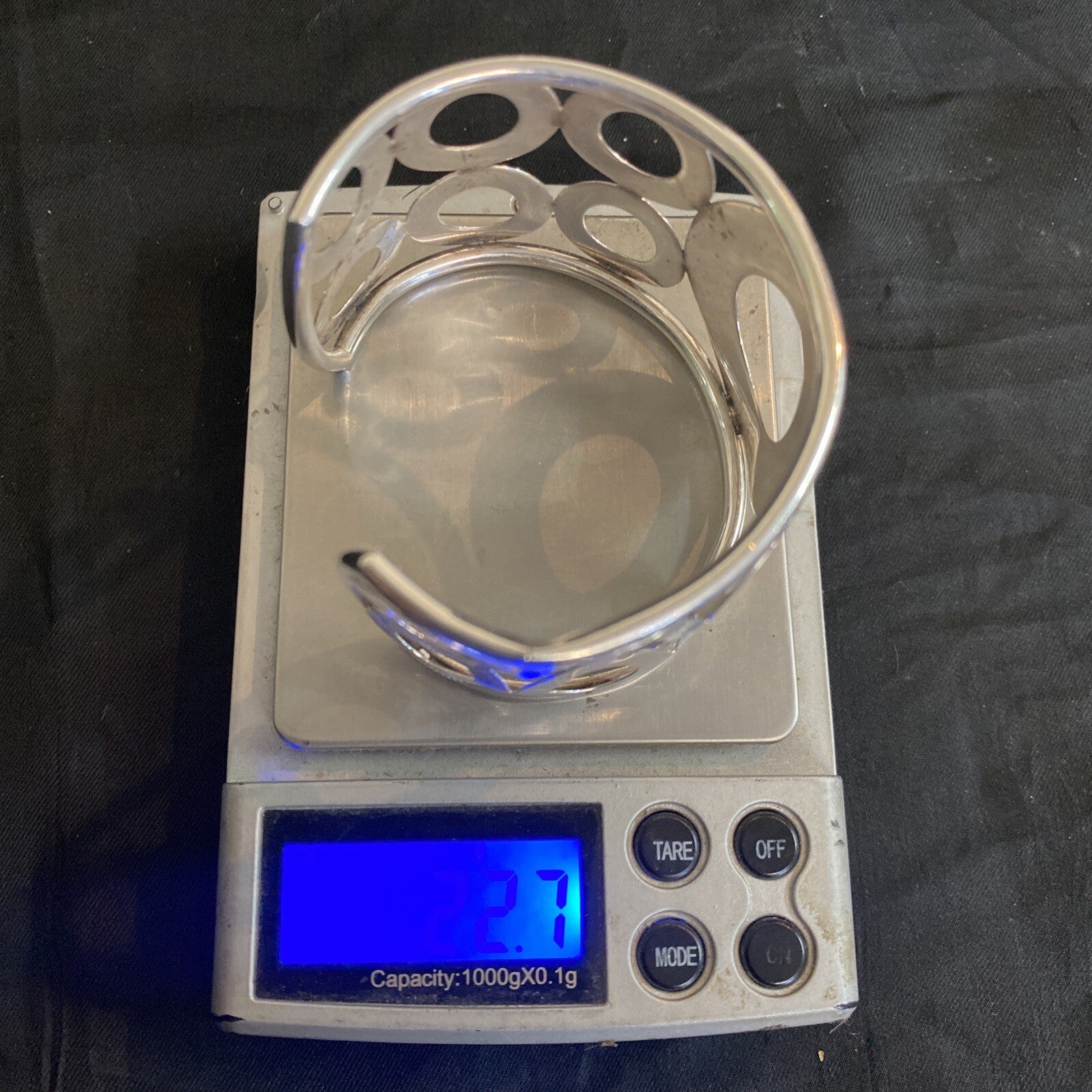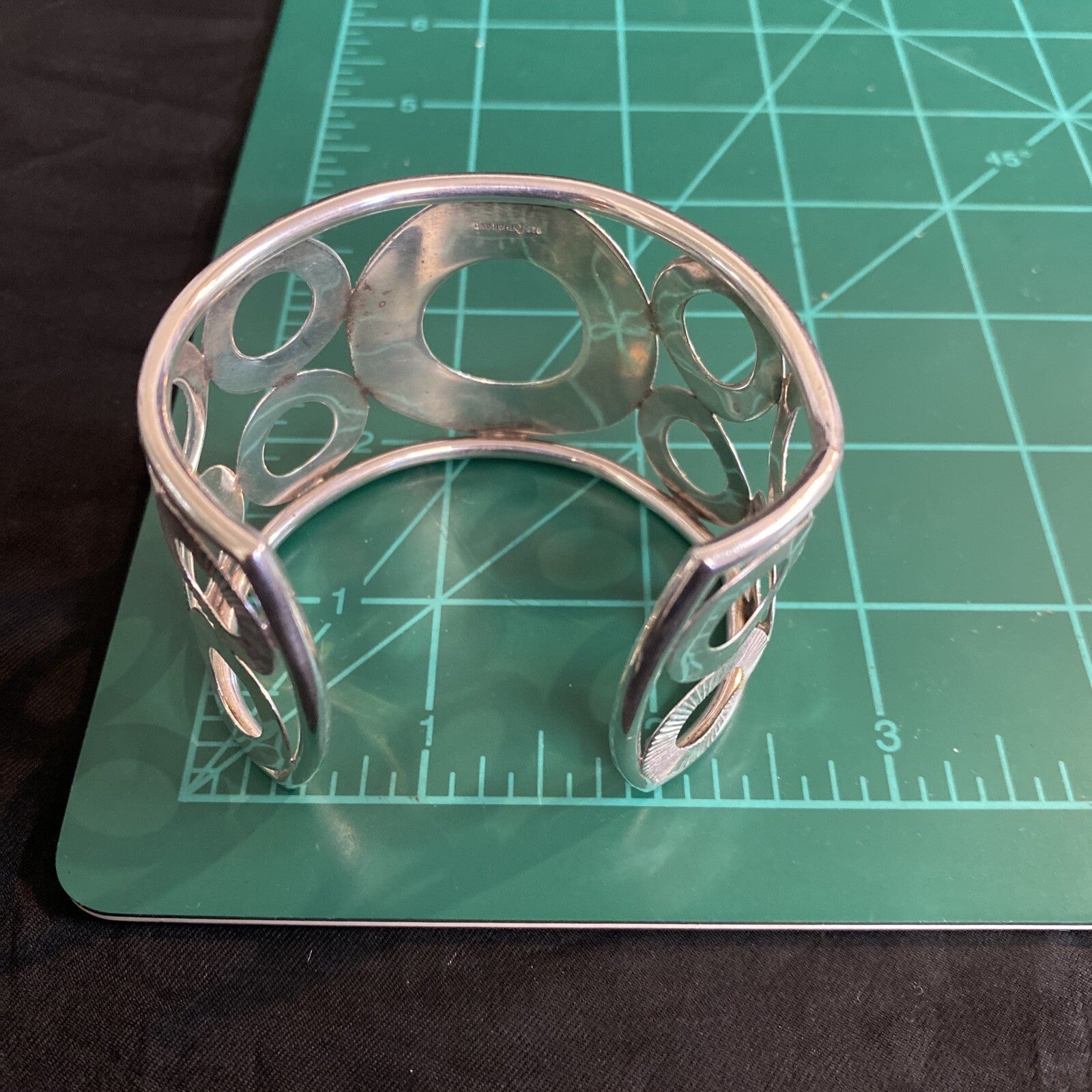 Sterling Circle Cut-Out Cuff Bracelet Marked Thailand 925 w designer logo