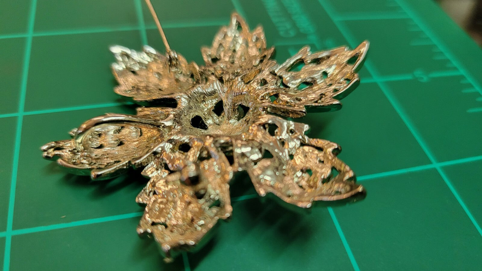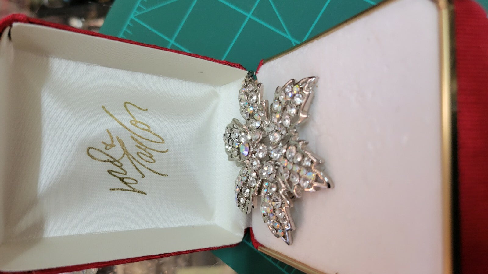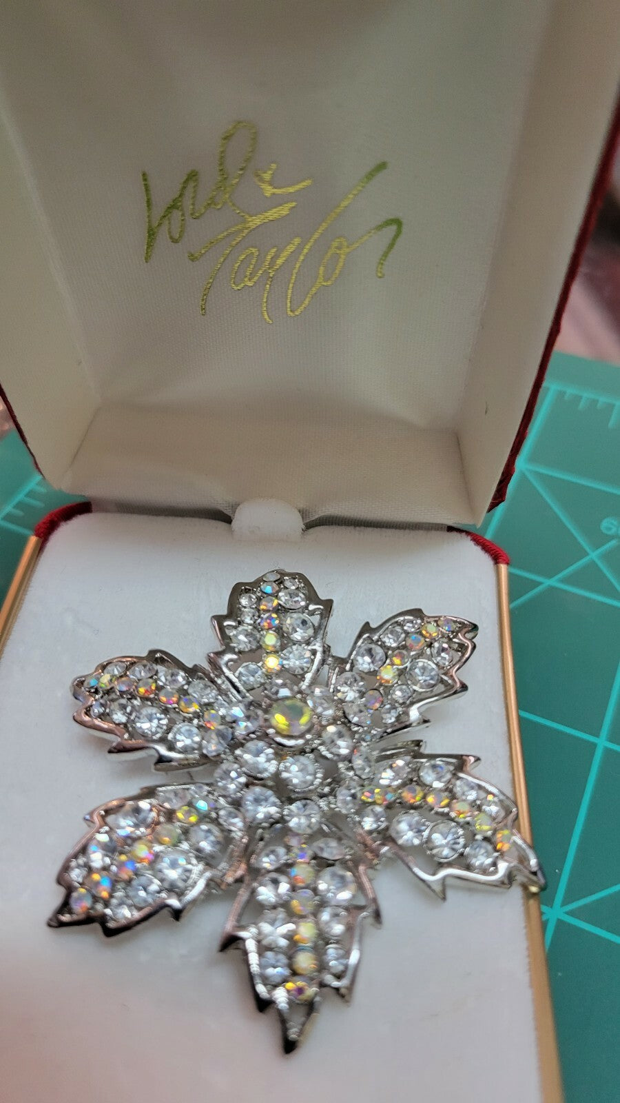 STERLING SILVER 20" CHAIN NECKLACE w Flower Rhinestone Pendant Brooch Lord & Ta