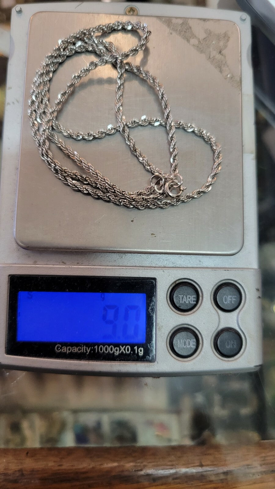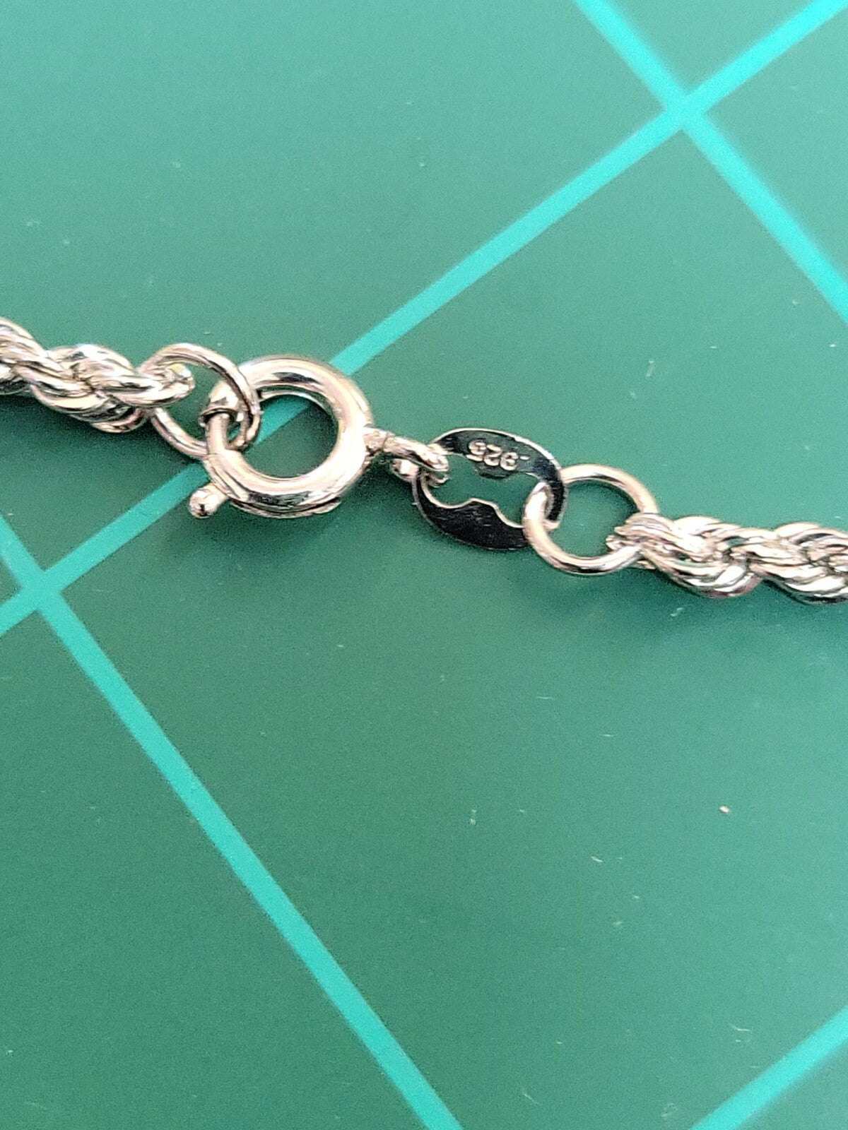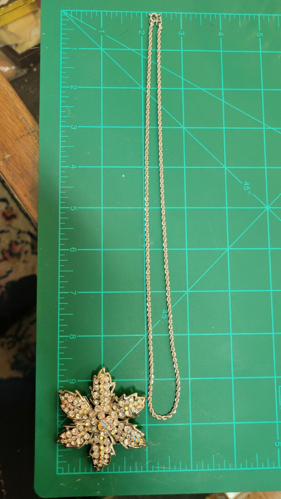 Offered for sale is a sterling silver 20" rope necklace It is marked 925 , weight: 9grams Excellent condition. Included is a beautiful vintage flower 2" rhinestone brooch pendant in the original Lord & Taylor box.