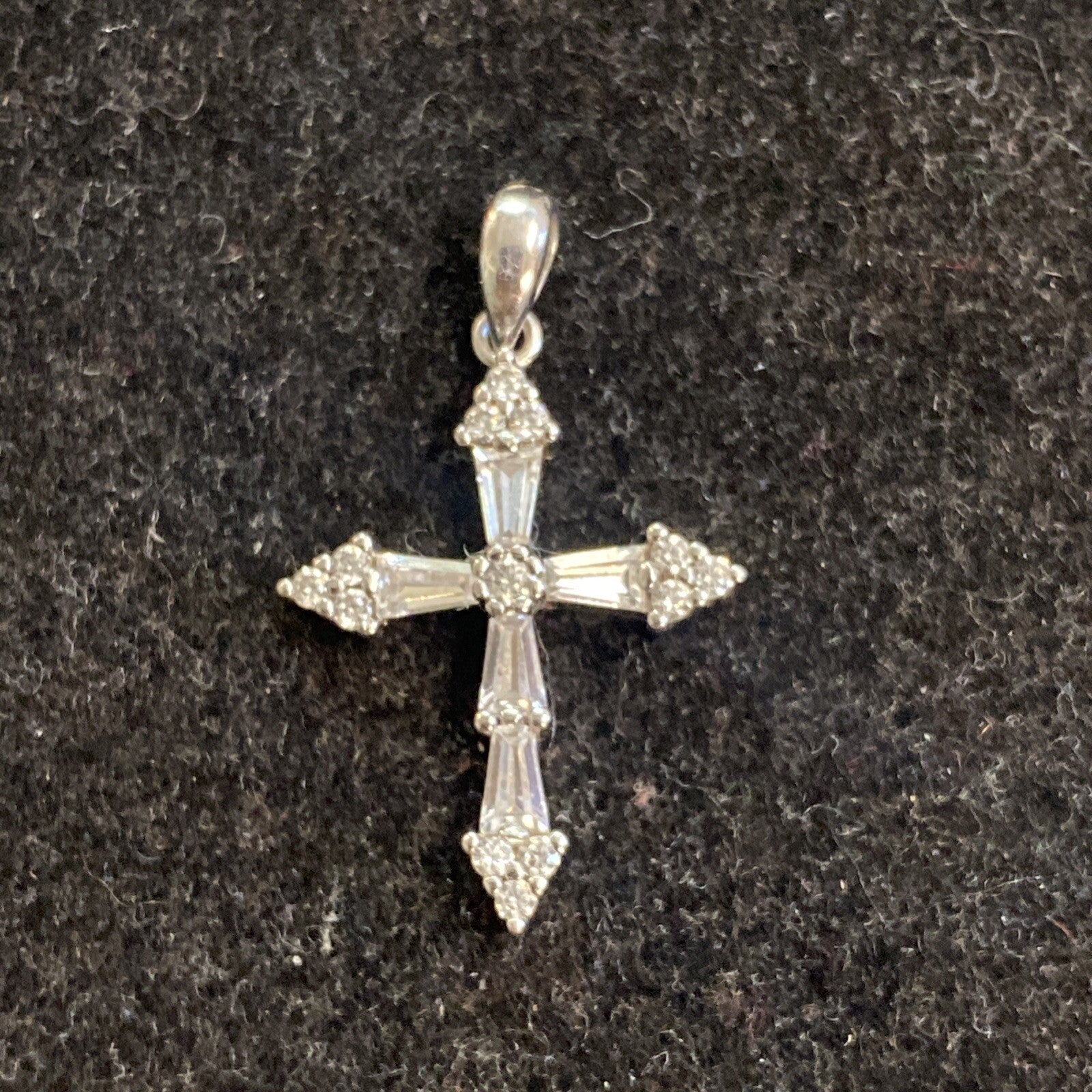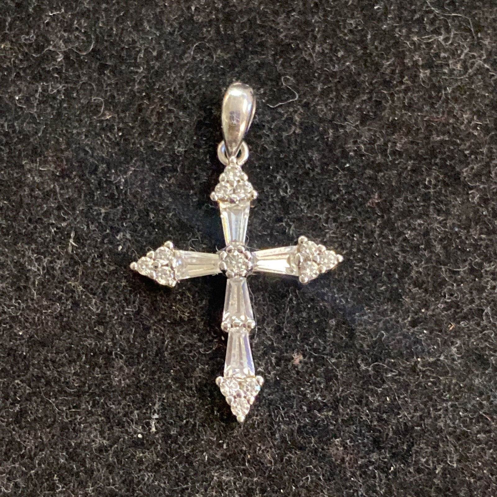 Sterling Silver 925 CZ Stone Cross Shaped Pendant 1.7g