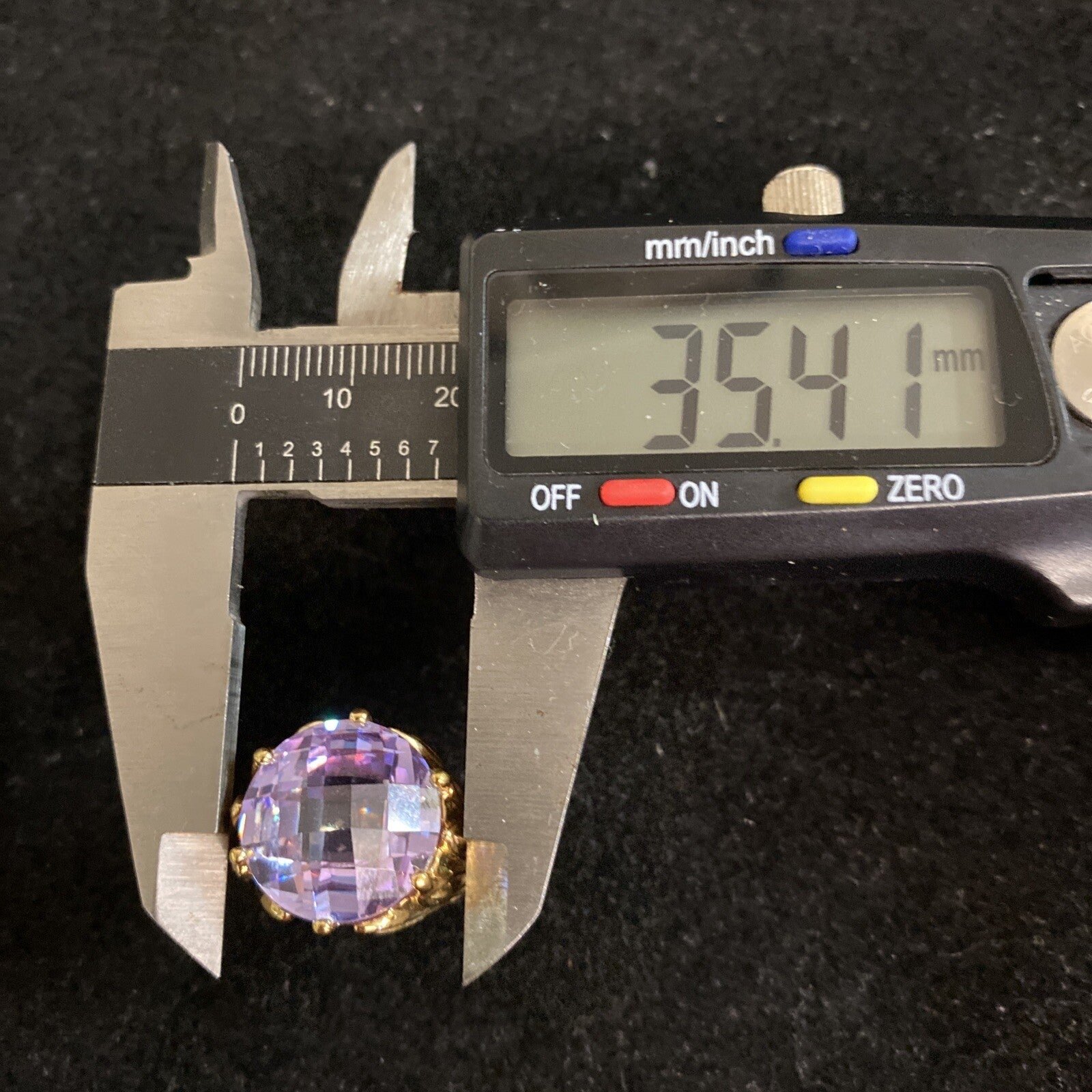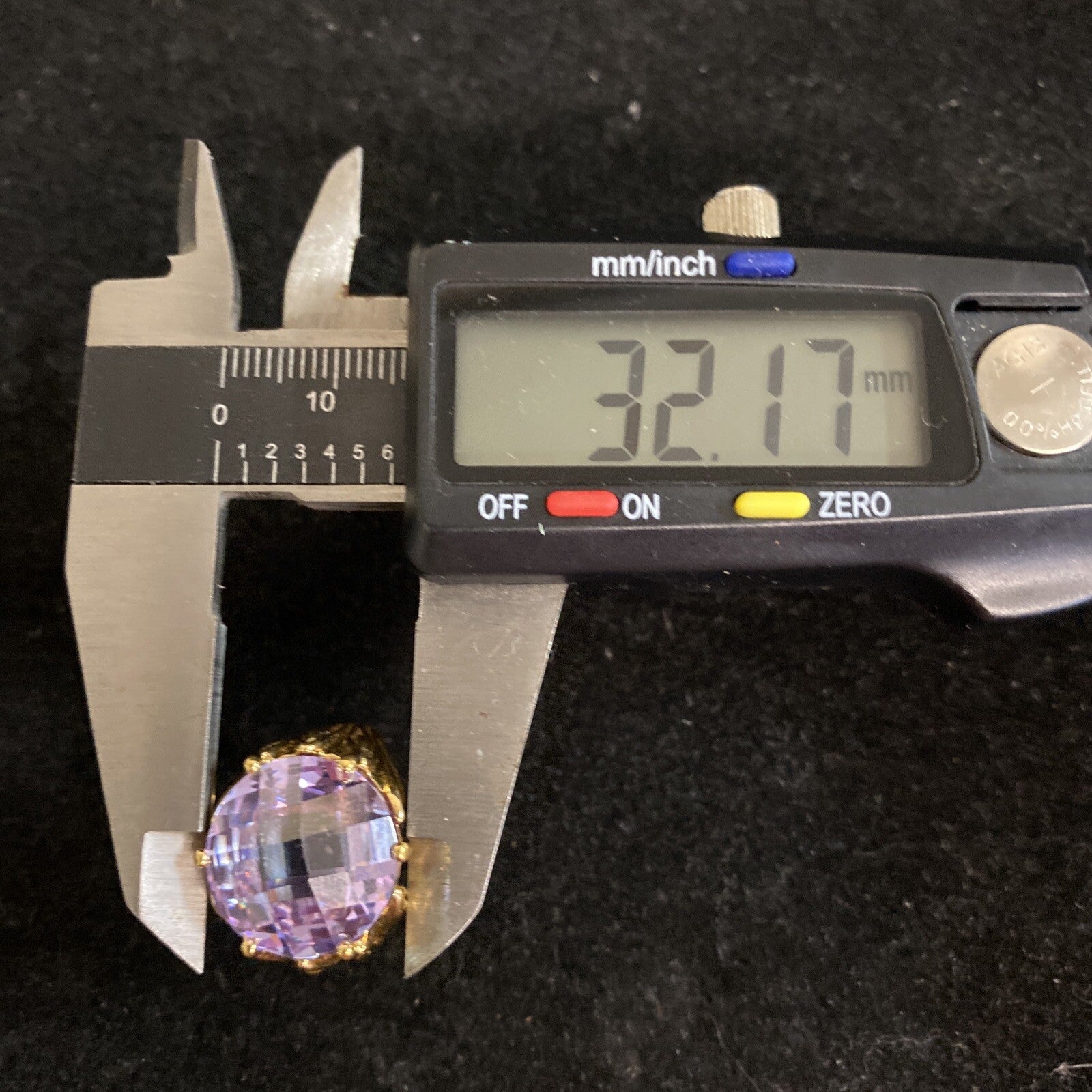 Offered for sale is a vintage gold vermeil over sterling silver ring with a faceted cushion cut purple CZ, size 7, excellent condition.