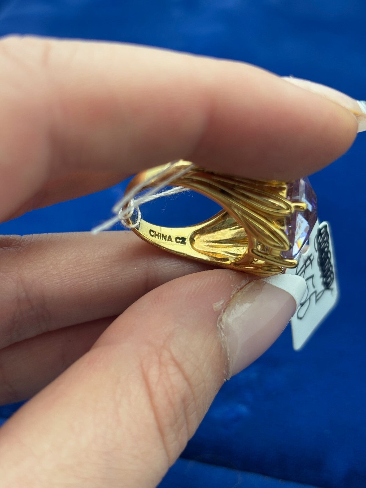 Sterling Silver 925 Gold Vermeil Purple Cushion Cut CZ Ring SZ 7