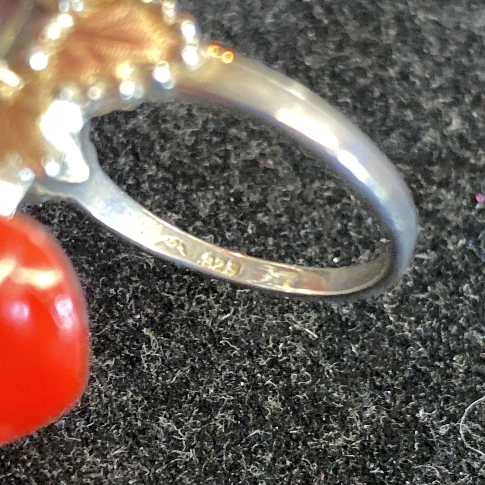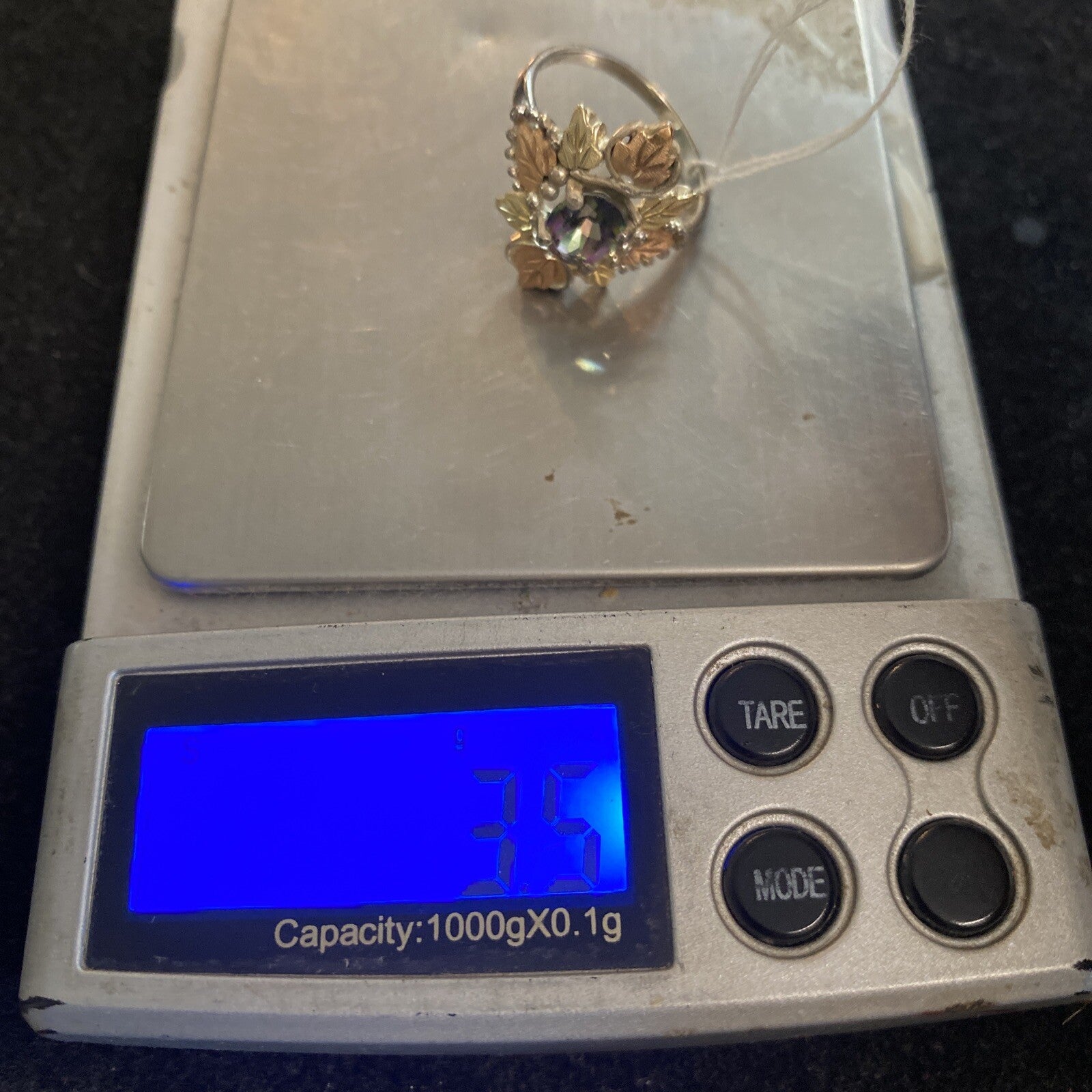 Sterling Silver 925 & Rose Gold Mystic Topaz Stone Leaf Ring Sz6.75 JM13