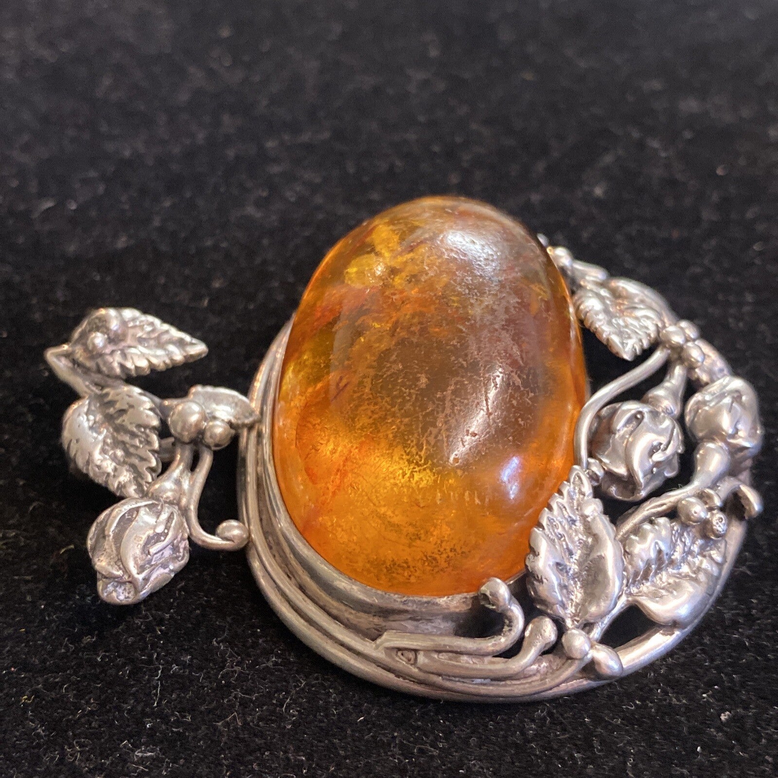 Sterling Silver & Amber 2 3/4" Pendant 51.3g