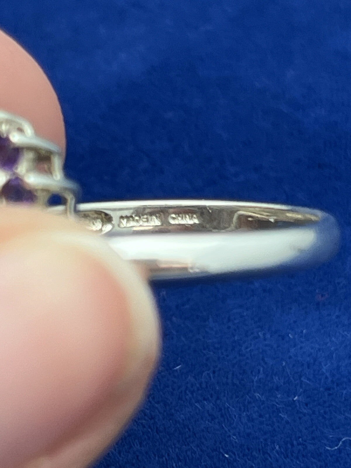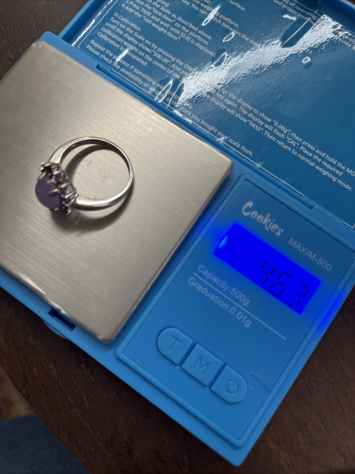Sterling Silver Lavender Jade Ring with Halo of 14 Amethyst