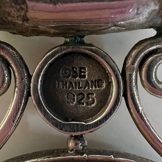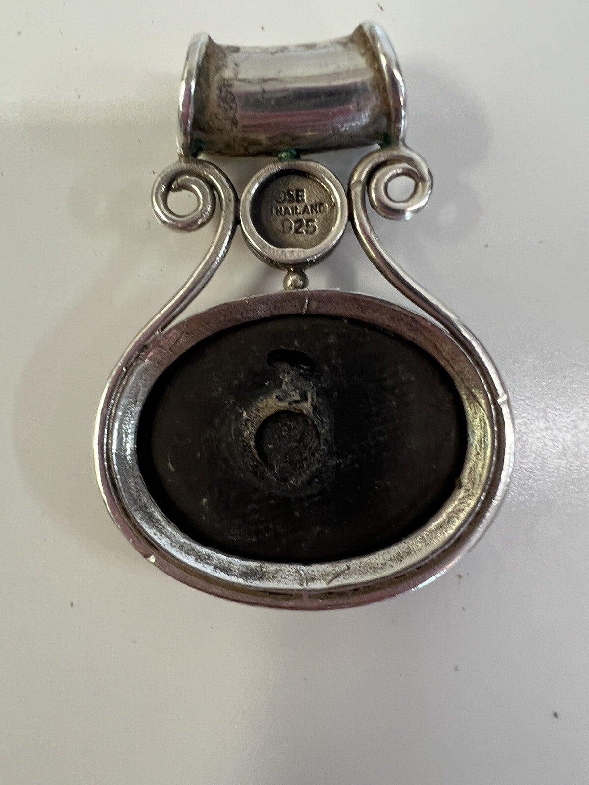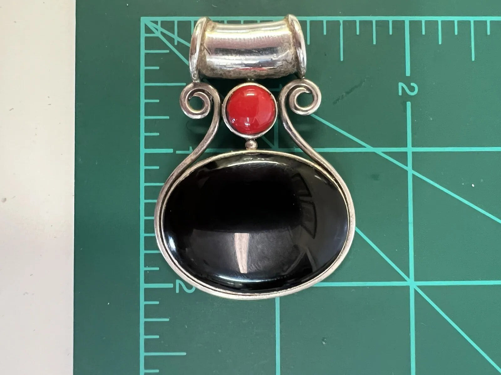 Sterling Silver Pendant Black Onyx w Red Cabochon marked DS 925
