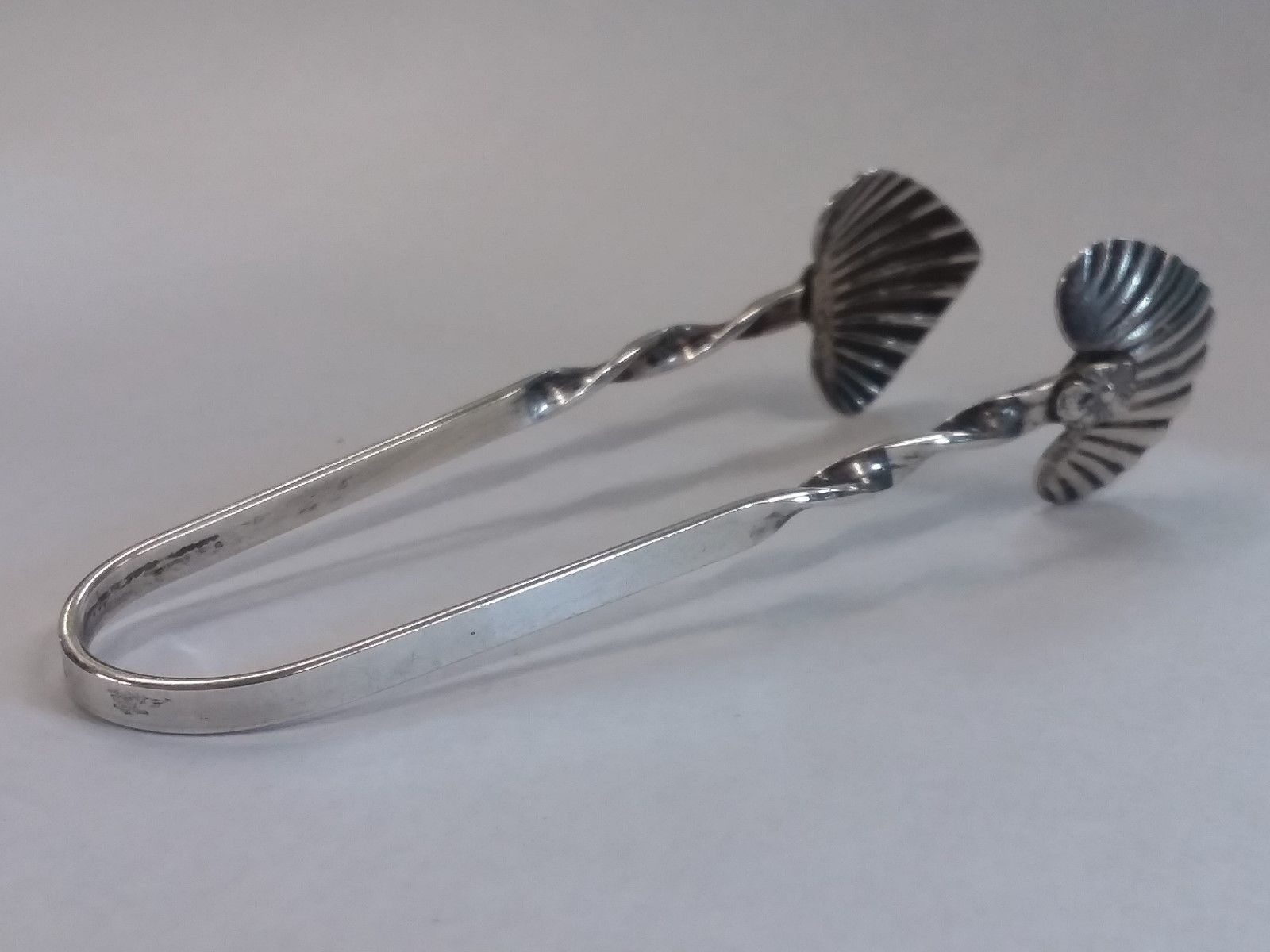 Sterling Silver Sugar Tongs w/ Twist Handles and Heart Ends