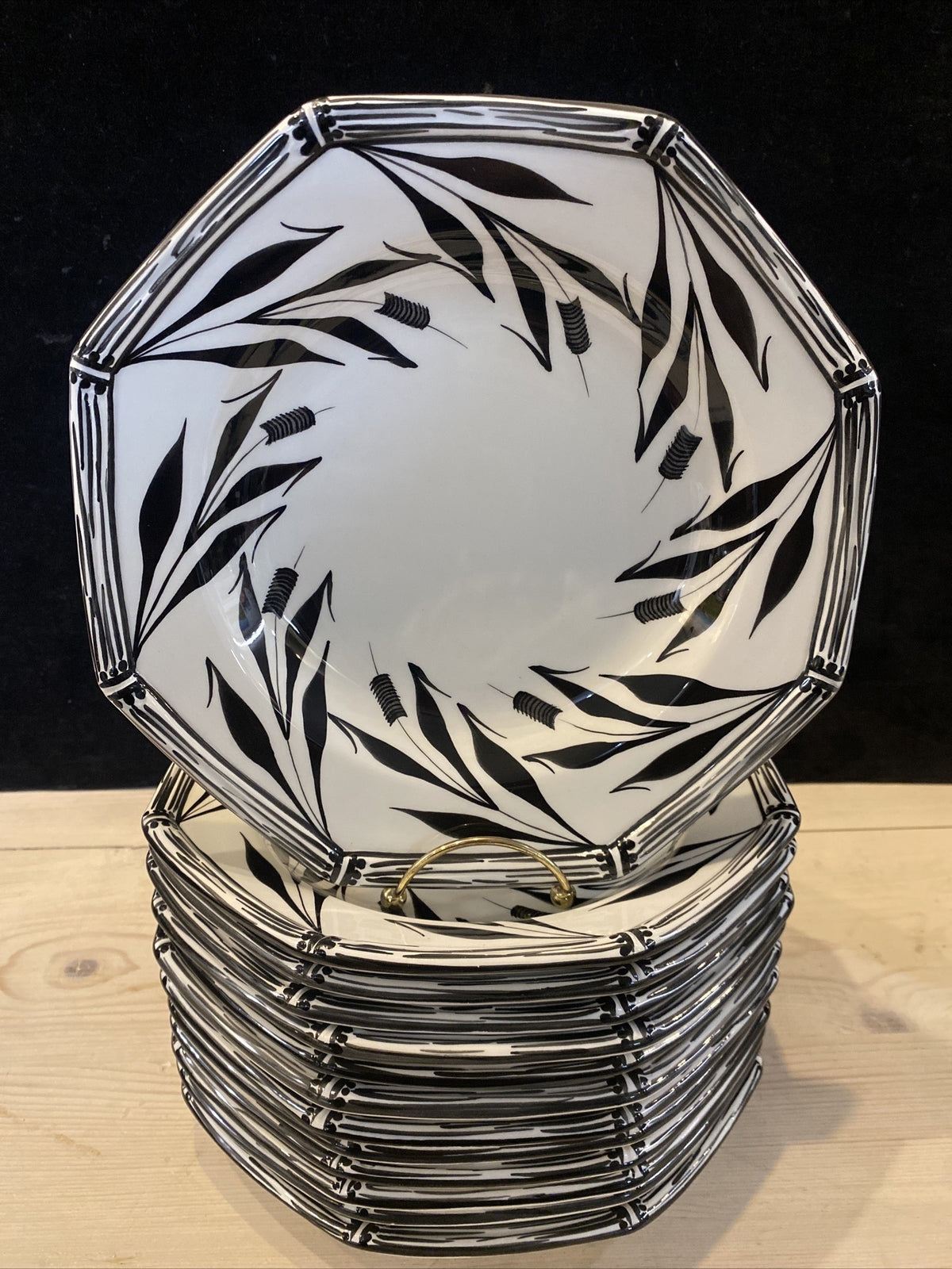 Tiffany & Co Este Ceramiche Black Bamboo Erbe Palustri 9.5” Soup Bowl 13 Avail