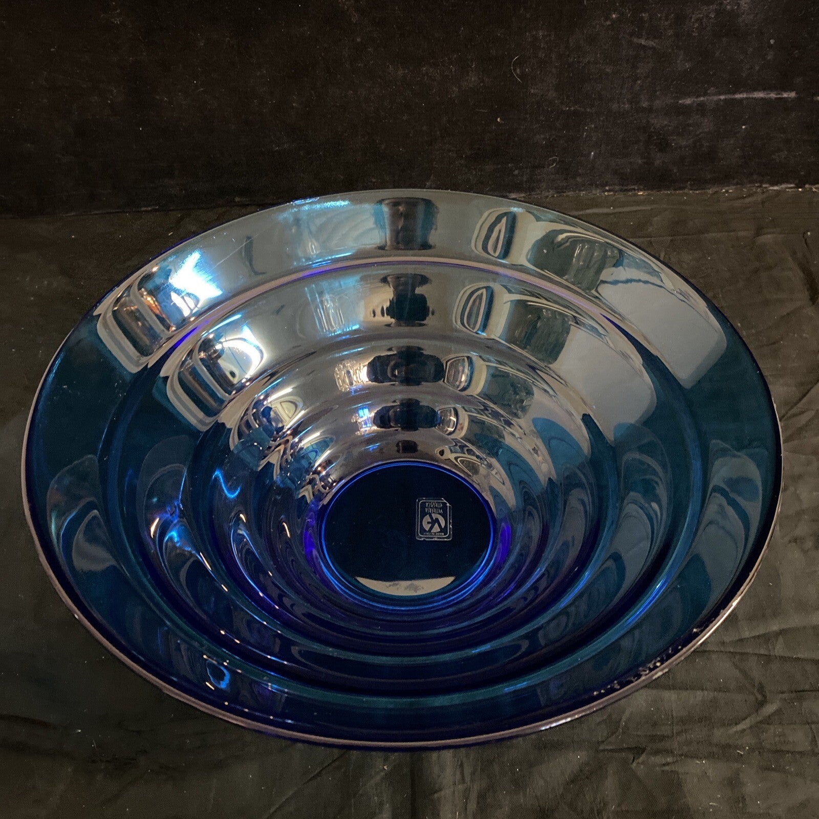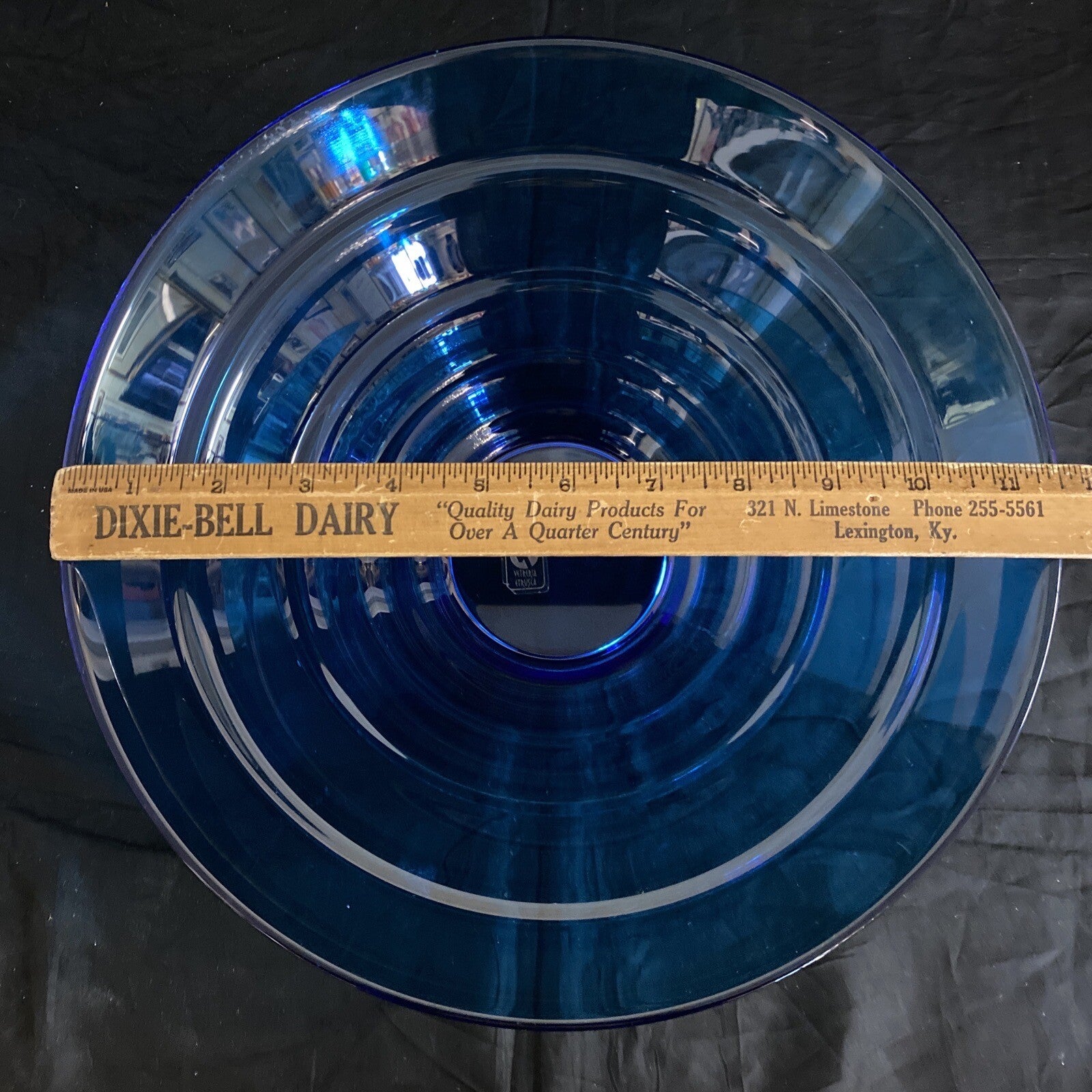 Vetreria Etrusca Italy Tiered Glass Cobalt Blue 12" Serving Bowl orig sticker
