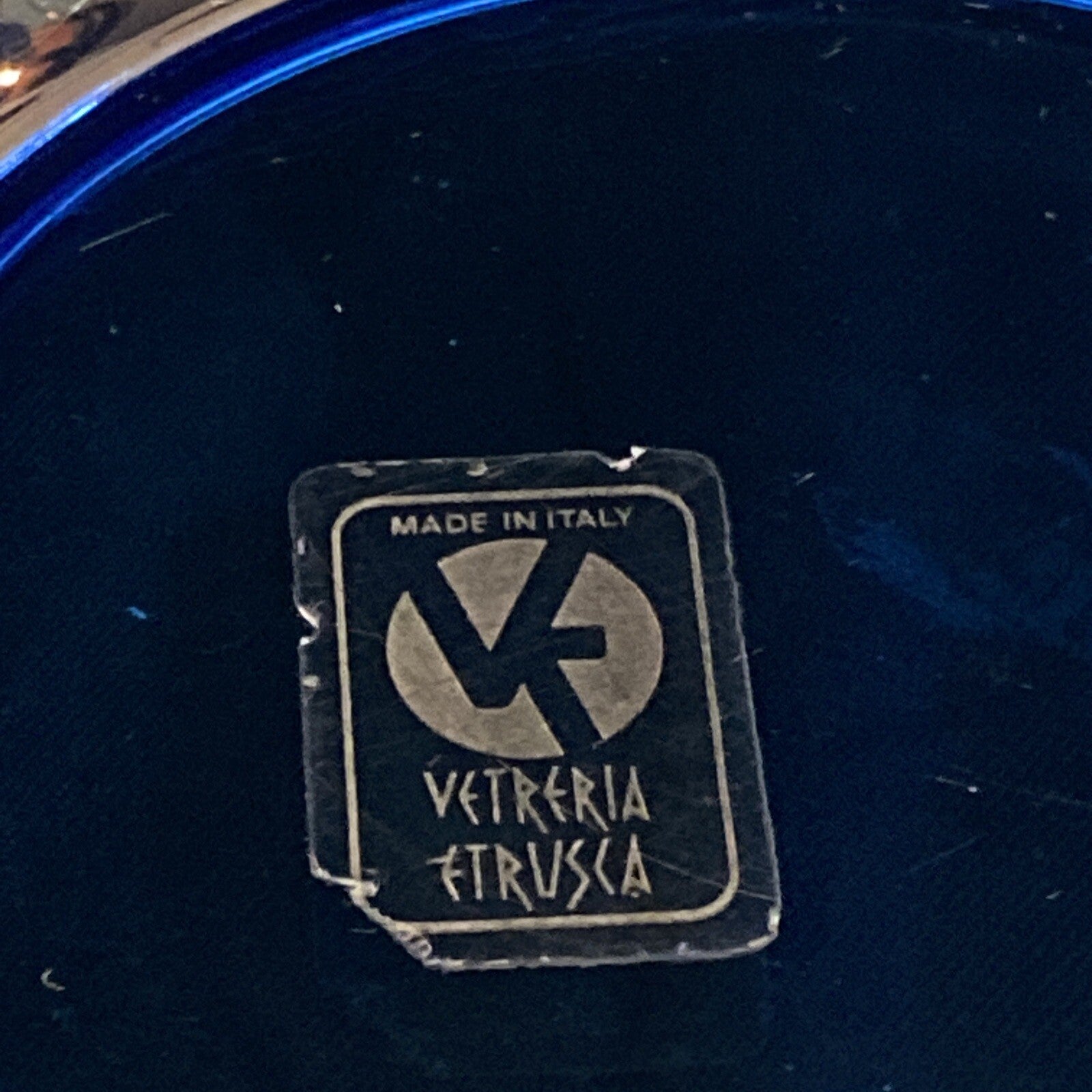 Vetreria Etrusca Italy Tiered Stepped Hand Blown Art Glass Cobalt Blue Bowl, With Original Label. measures 12" diameter x H 4.5" tall. Excellent condition. You will see this bowl offered for twice the price we are asking.