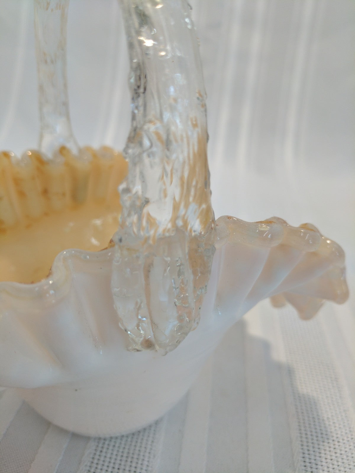 VICTORIAN ENGLISH STURBRIDGE Gold CASED GLASS BASKET W/ THORN HANDLE