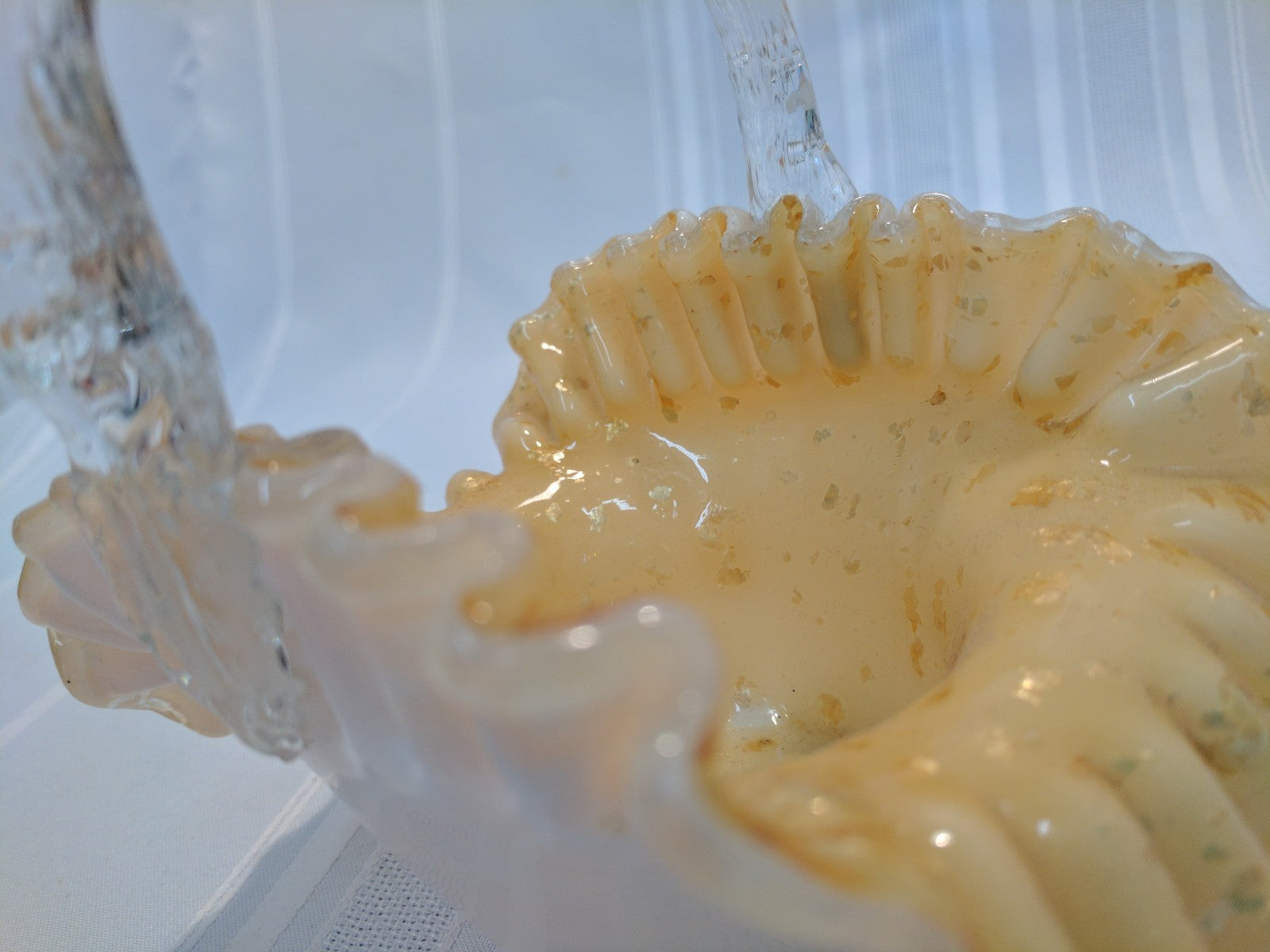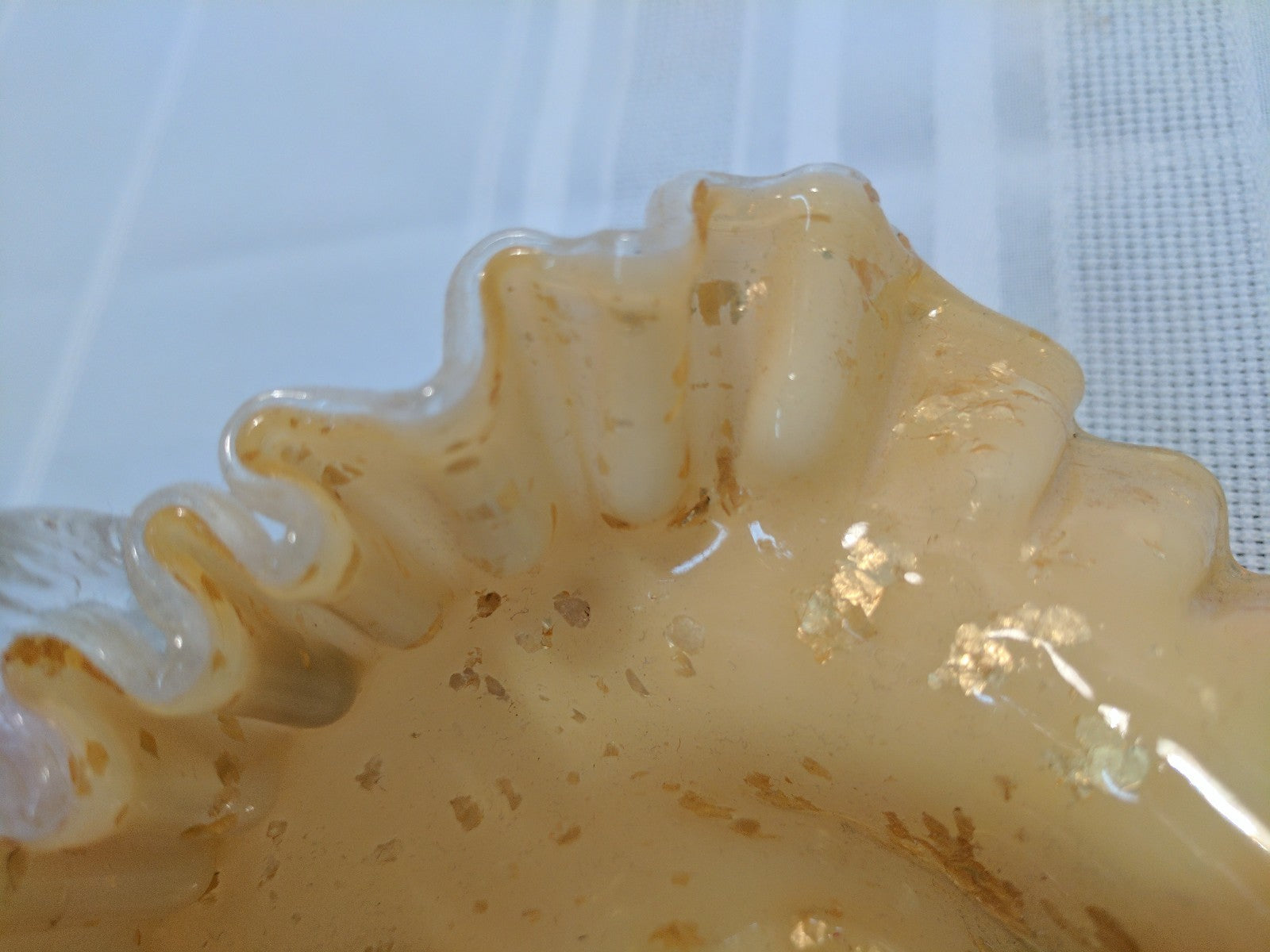 Offered for sale is a gorgeous Victorian English Sturbridge cased basket with a gold interior and a thorn handle circa 1890..Study the pictures to appreciate the gold flecks throughout the interior. Truly a beauty! This basket measures about 7.5" tall X 6"wide x 4.25'' deep. It is in great condition for glass of this age with no chips or cracks. With glass of this age it is not unusual to see bubbles, straw marks, rough mold lines, etc