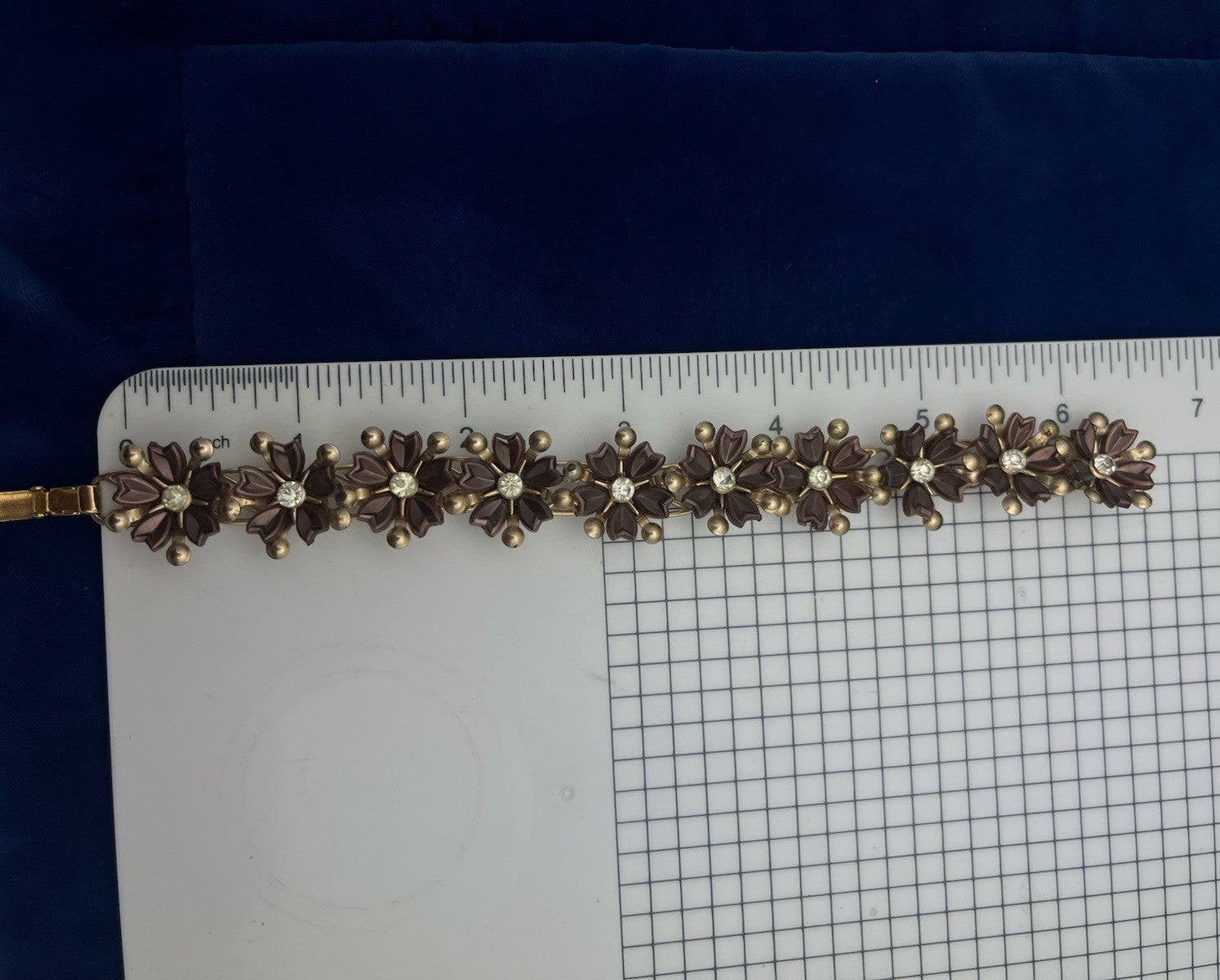 Vintage 1940's Metal 3 D Flowers Rhinestone Center 10 Link Bracelet Beautiful!