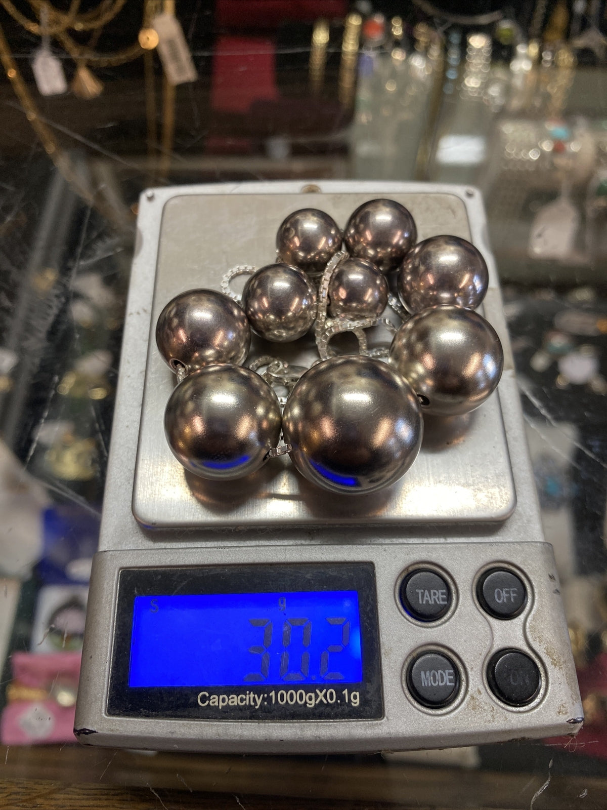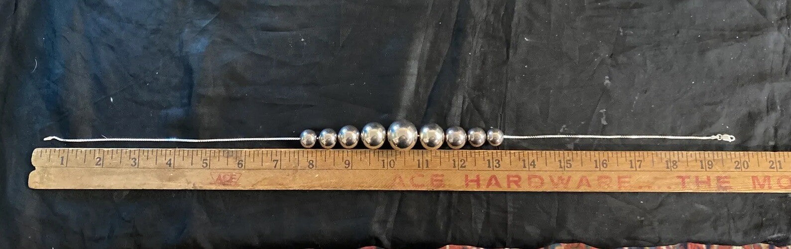 Vintage 20” Sterling Silver 925 Sliding Ball Bead Necklace 30.4 g center 21mm