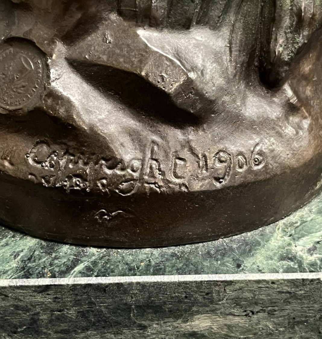 Vintage Auguste Moreau Bronze Sculpture on Marble Base Child w/ Goose Copr. 1906
