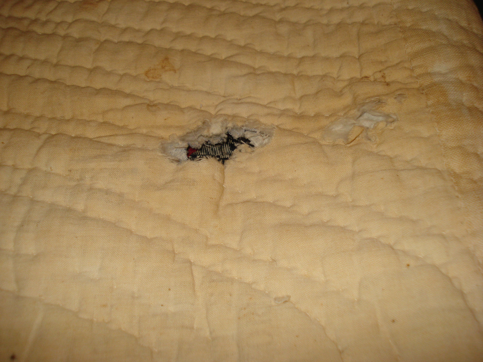 The front is a crazy square patchwork design . (some stains, frays, and one hole, see pictures)