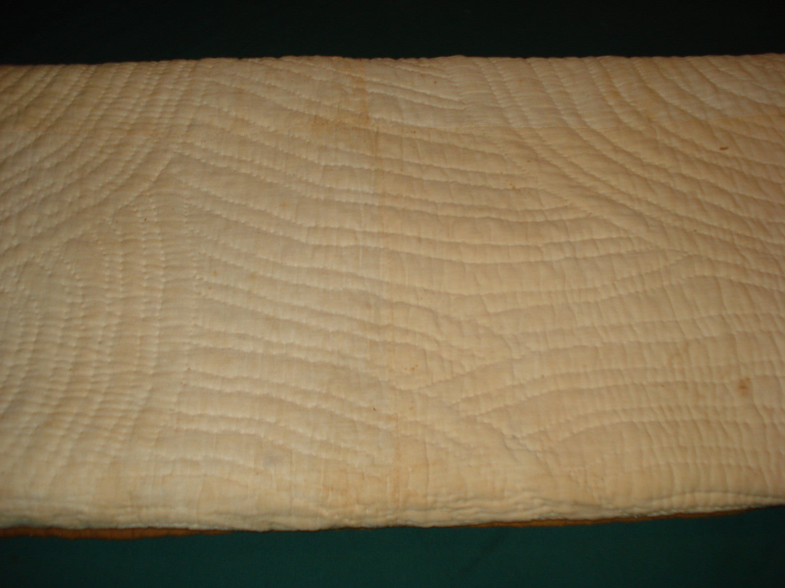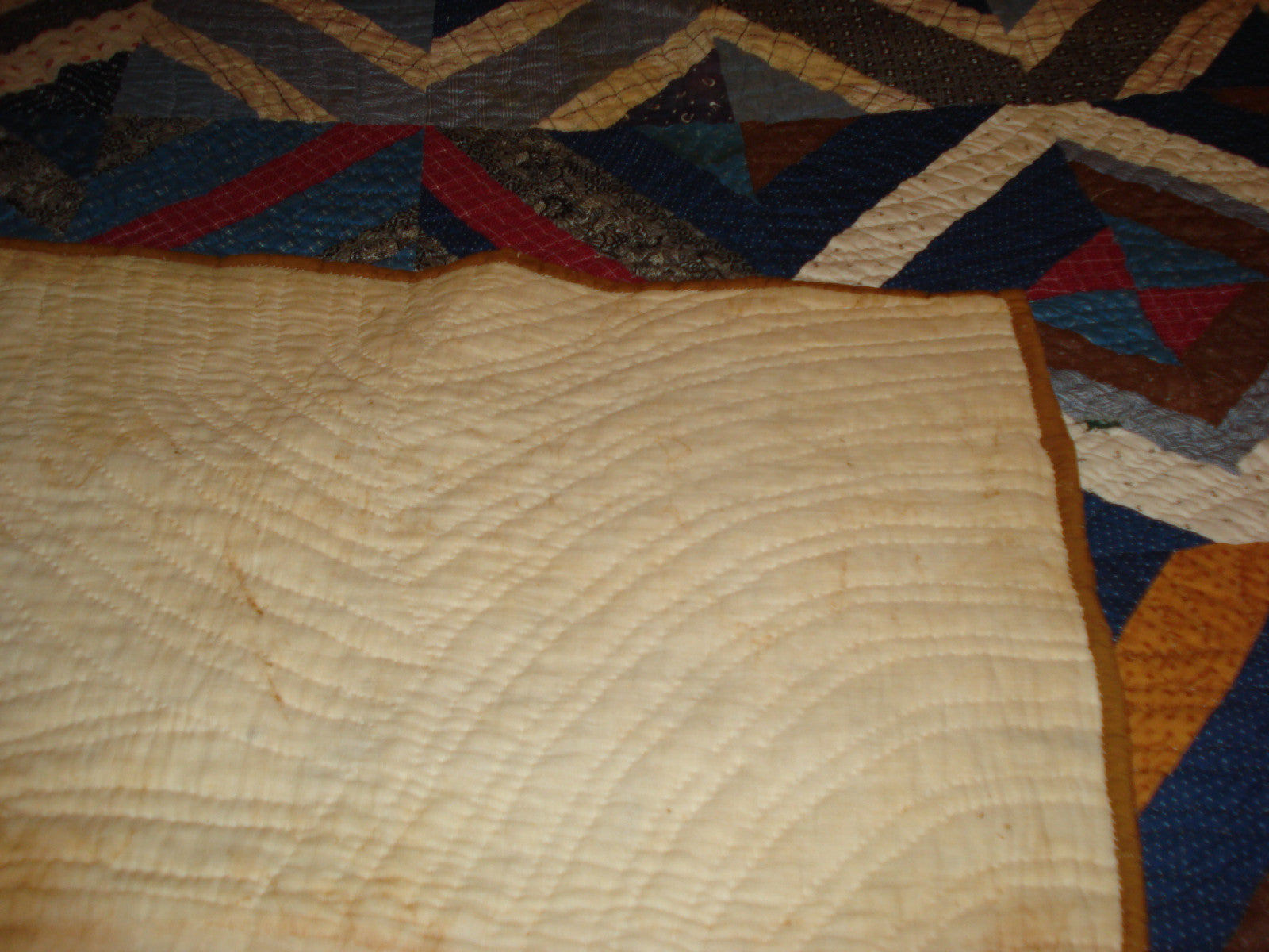 The back and lining are done in a beige muslin cotton. (some staining from use and age)