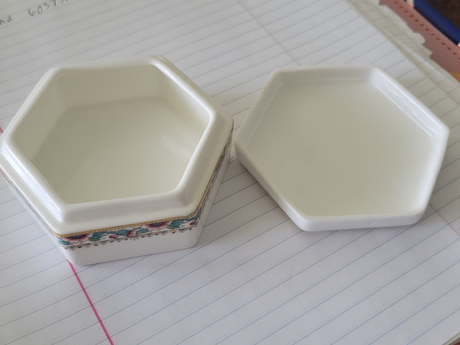 VINTAGE COALPORT CHINA TRINKET BOX W/ LID- MING ROSE FLORAL MADE IN ENGLAND.
