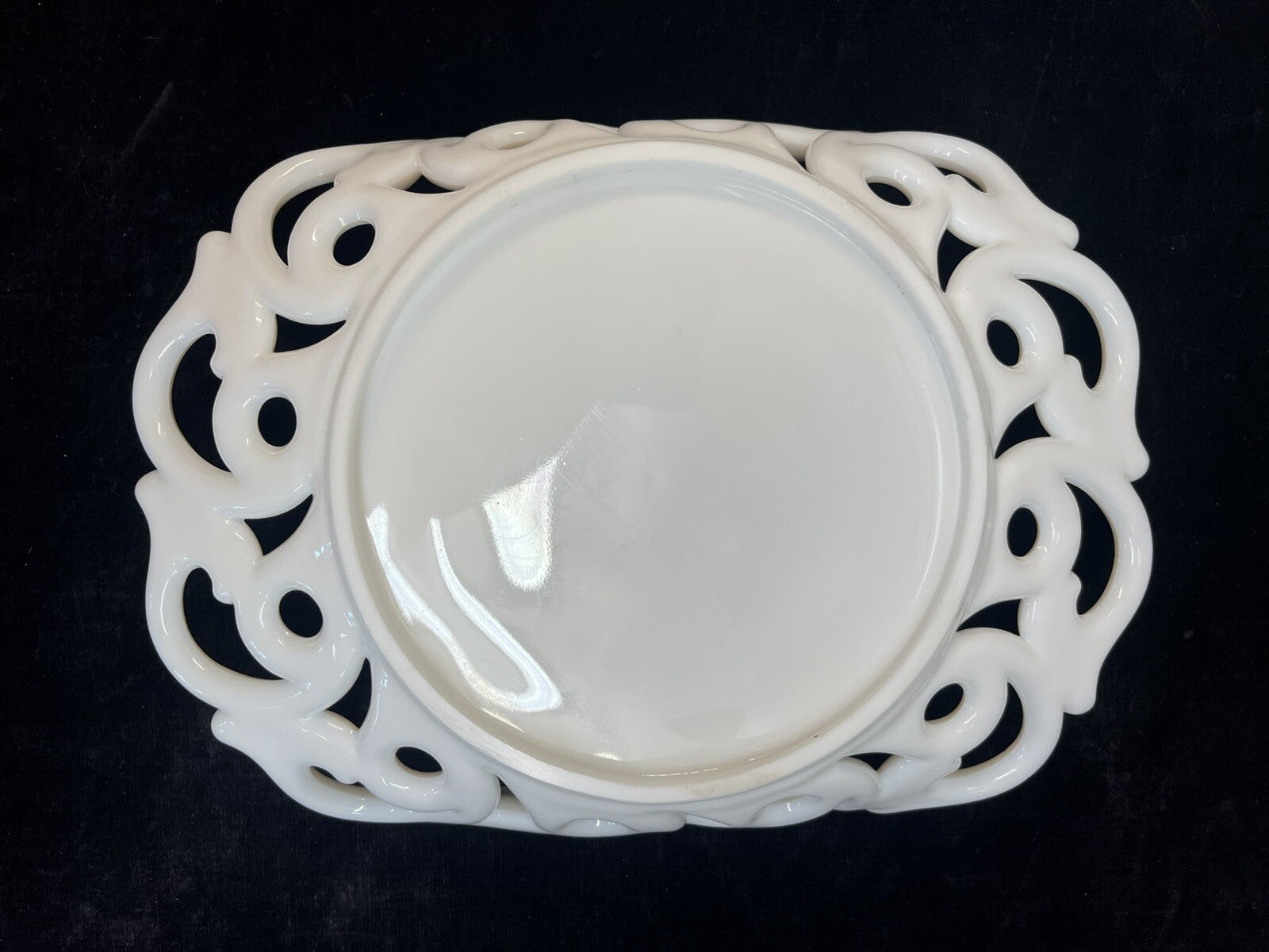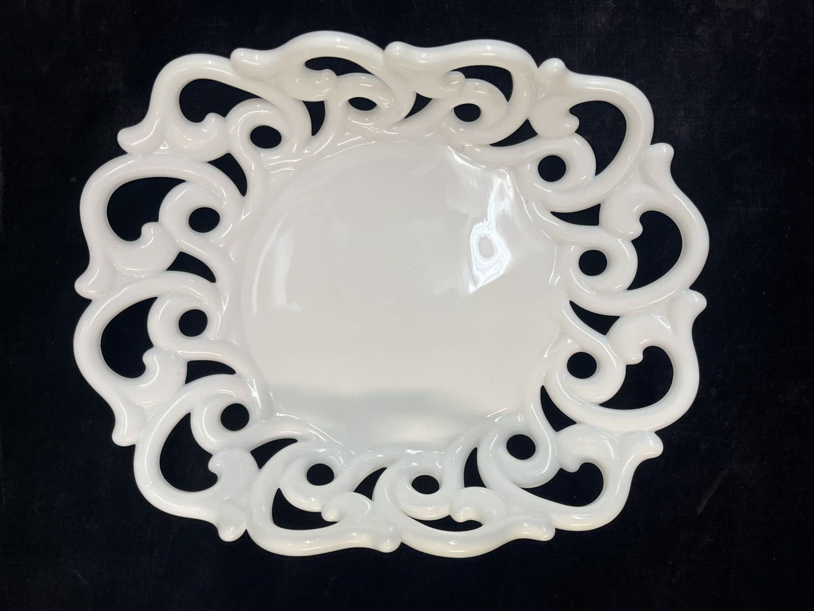 Vintage Fostoria Monroe Milk Glass Fruit Bowl Open Lace Plate 10 3/4"
