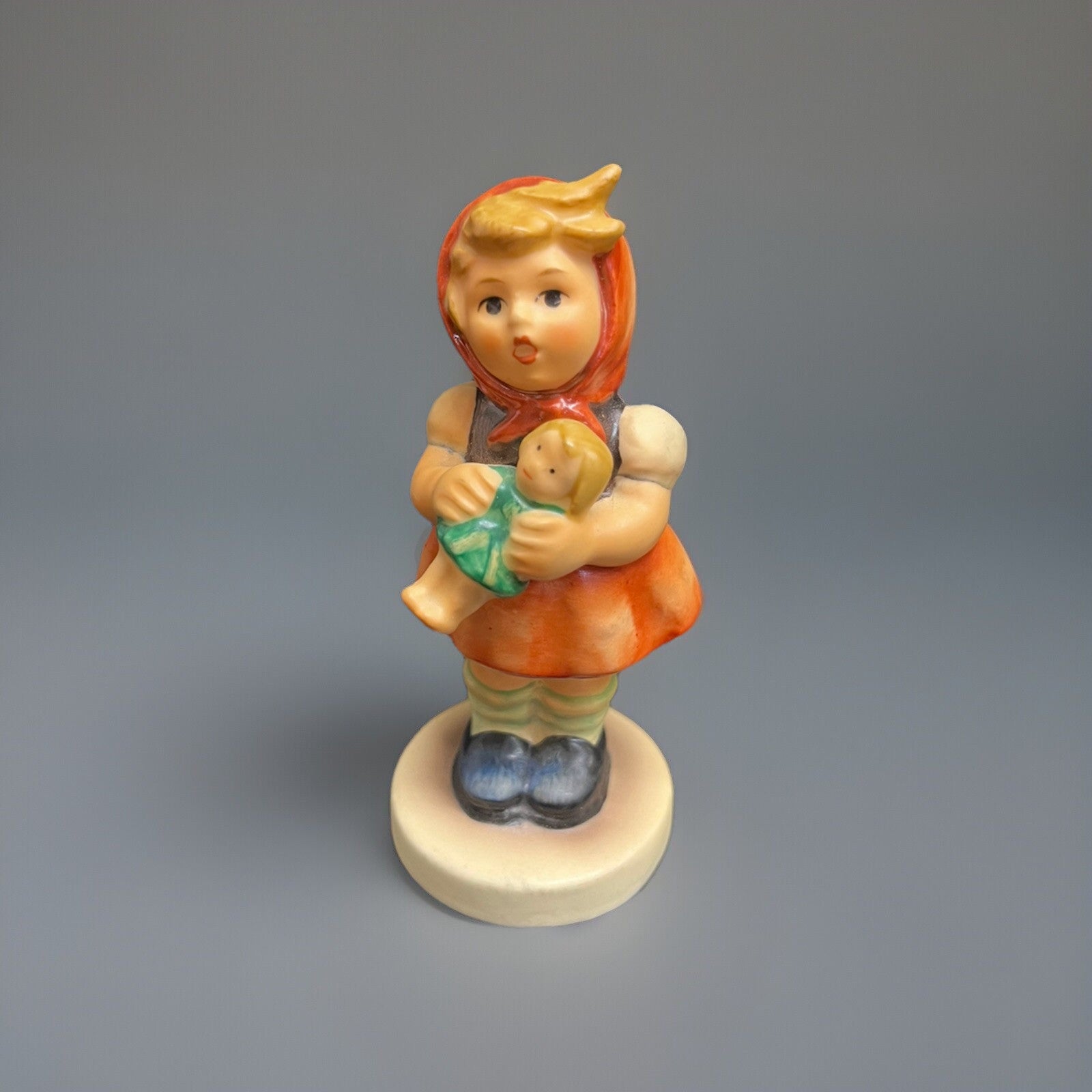 This is a vintage Hummel porcelain figurine titled "Girl with Doll" (item number 239/B) made in Germany. The figurine features a girl holding a doll and measures 3.5 inches in height. It is part of the Hummel collection and is made of porcelain, with a multicolor design. The base diameter is 1.5 inches, and the subject of the figurine is a girl.