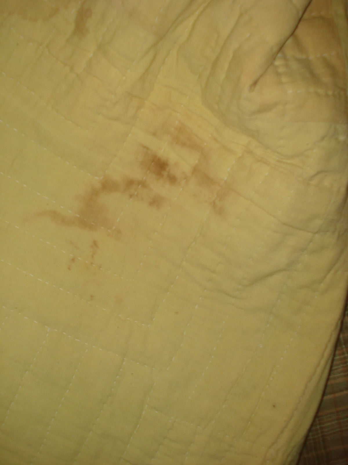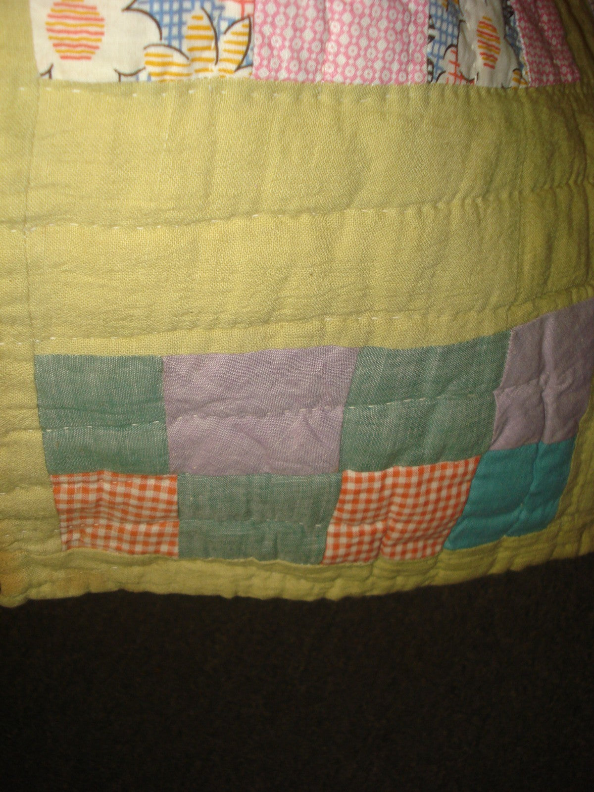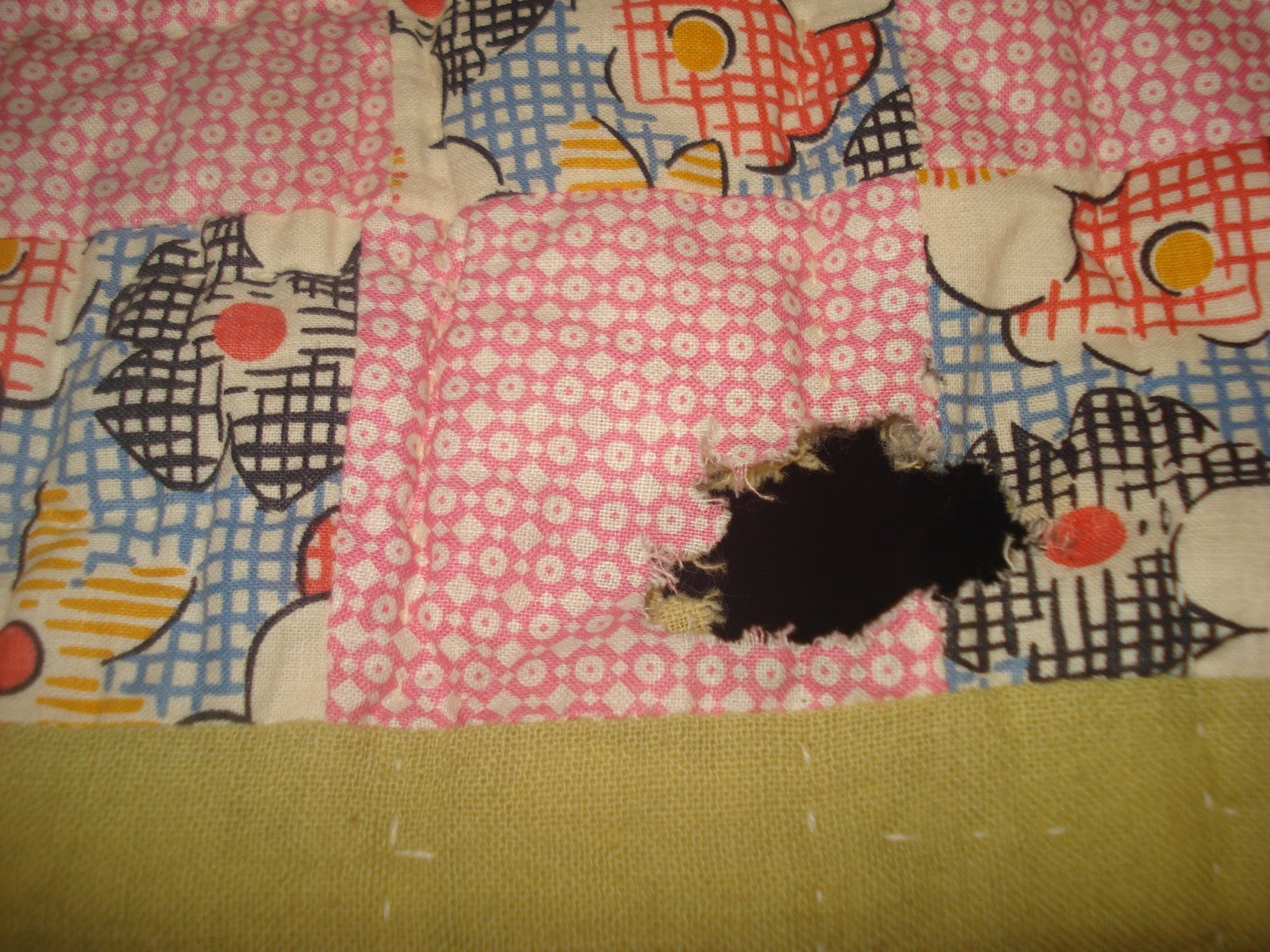 The front is a square patchwork design . (some stains, frays, and one hole, see pictures)