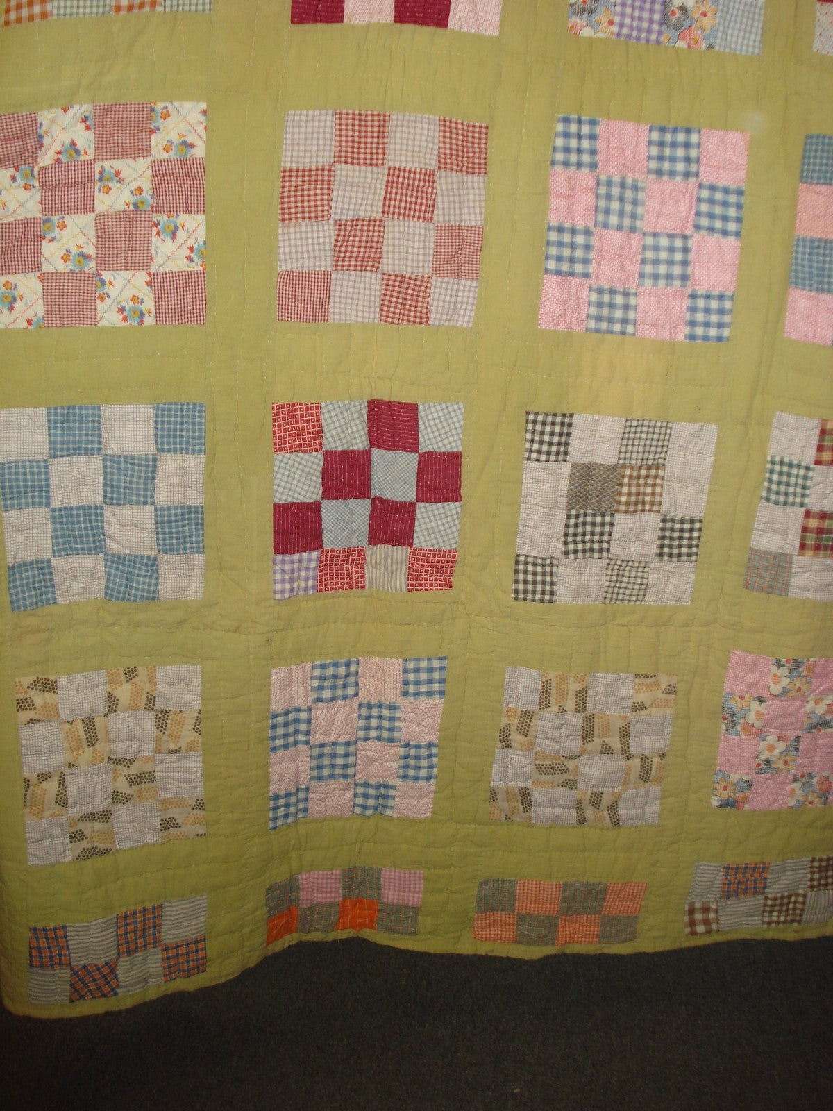GREEN SQUARES QUILT / BEDSPREAD / COMFORTER .