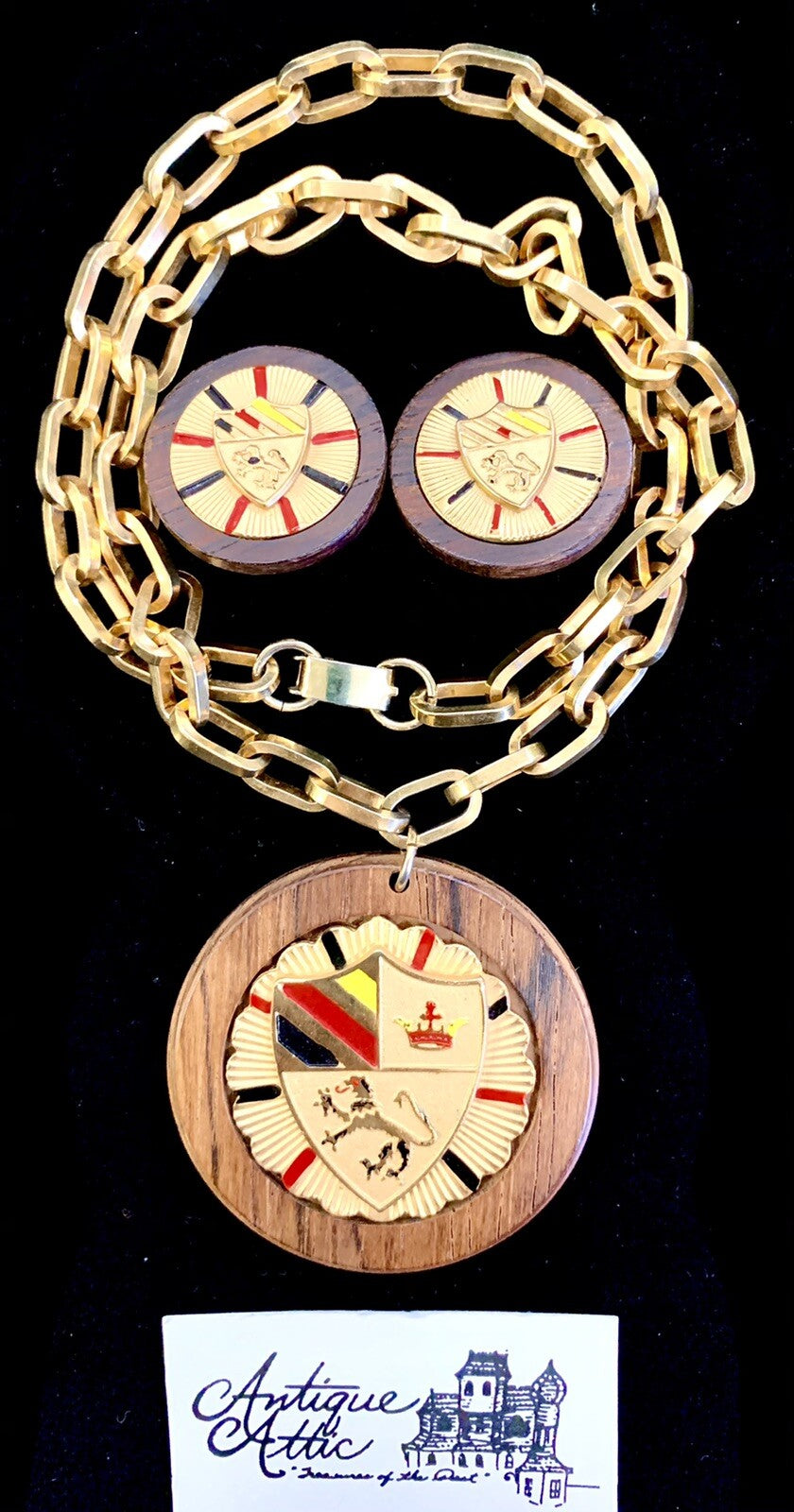 Vintage Kramer of New York Necklace and Clip Earrings Lion Coat Of Arms Heraldic
