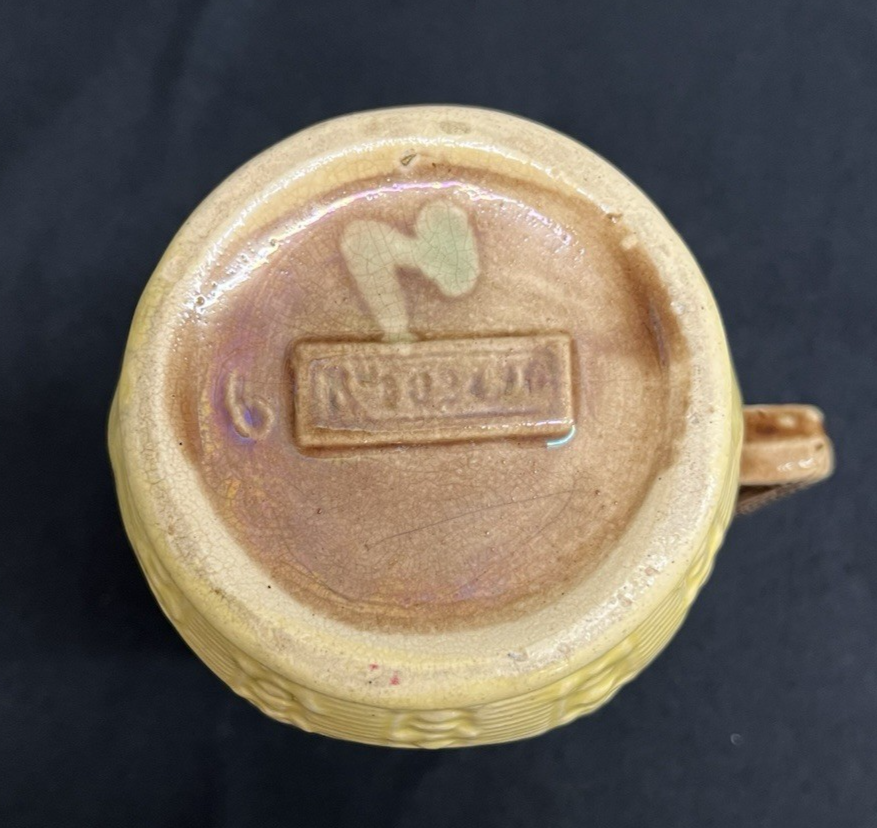 This vintage Majolica embossed dogwood flower creamer/jug/pitcher is a charming piece of decorative cookware. The floral basket pattern, multicolor design, and European Majolica style add a touch of elegance to any table setting. Crafted from ceramic with a glossy finish, this hand-painted pitcher features intricate details and a European production style. Perfect for serving cream or milk, this antique creamer is a unique addition to any collection of pottery and glass. Made in an unknown country or region, this original piece requires hand wash only to maintain its beauty.