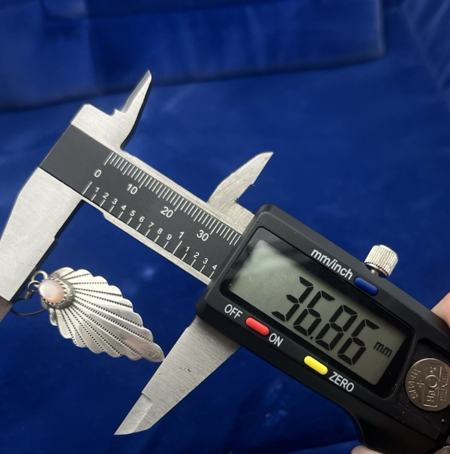 These Vintage Navajo Sterling Silver Mother of Pearl Dangle Earrings are a beautiful and unique piece of Native American jewelry. Handmade with 925 sterling silver, they feature a natural pink mother of pearl shell main stone in an oval shape. The dangle/drop style adds movement to the earrings, which are signed by the maker, KF. Made in the United States, these earrings showcase traditional Navajo design and craftsmanship, making them a stunning addition to any jewelry collection.