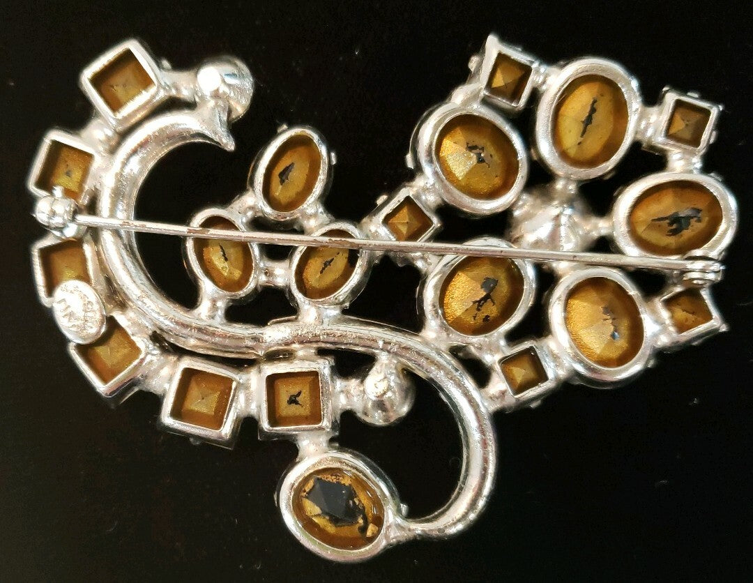 Vintage Signed Weiss Smoky Gray & Crystal Rhinestone Brooch Prong Set
