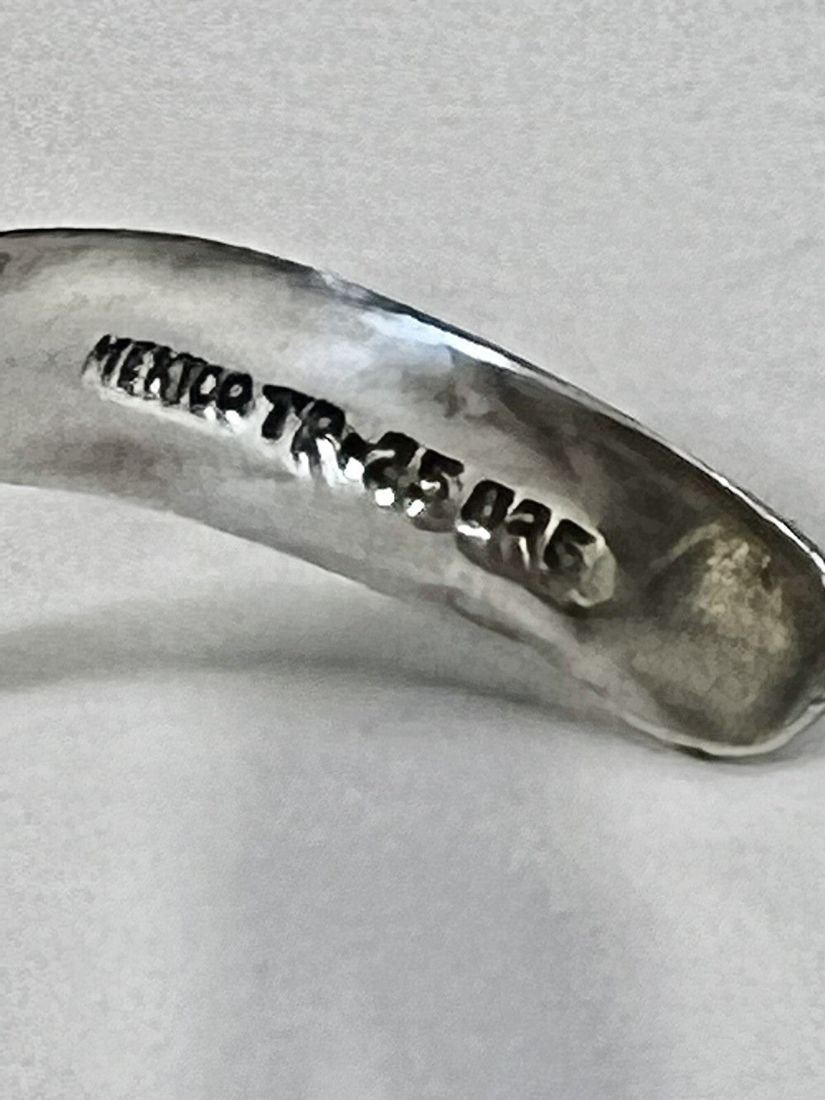 Vintage Sterling Mexico Cuff Bracelet w Onyx TP-25 Modernist Taxco