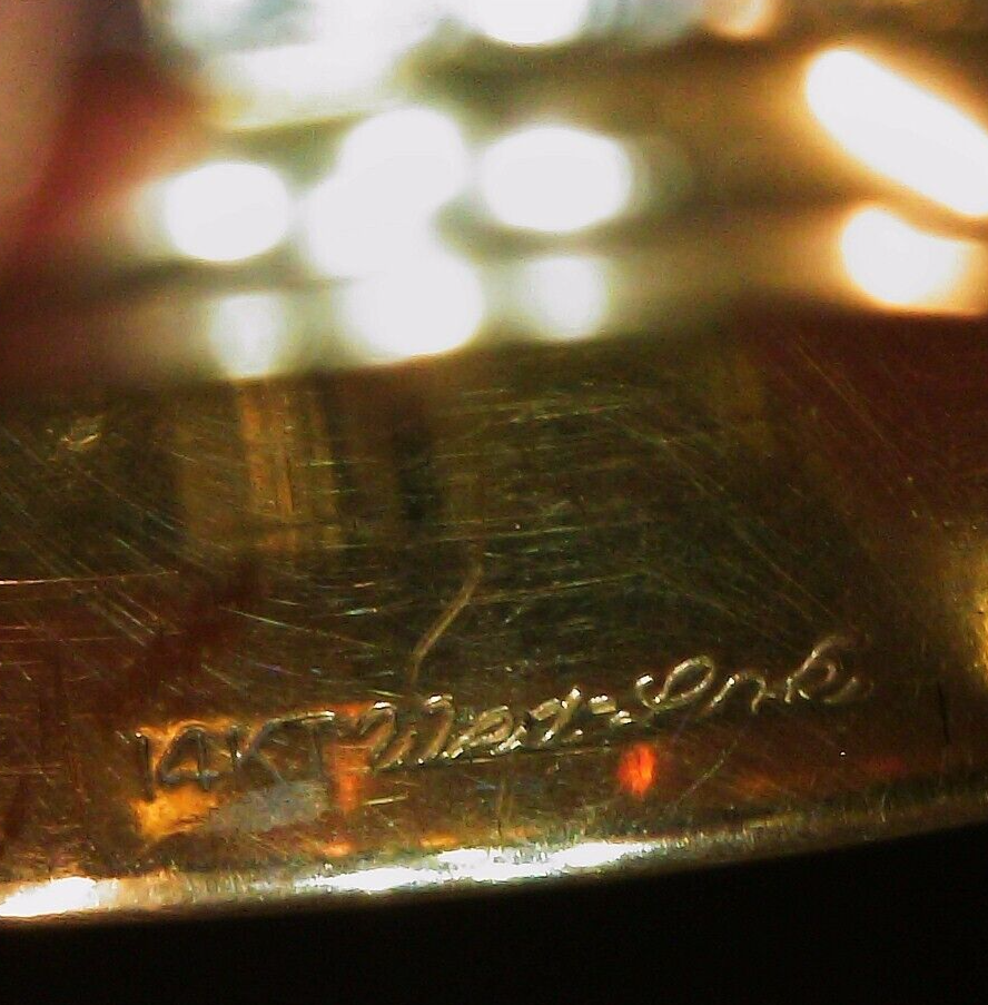 This vintage pair of rings from Wedlok is a stunning addition to any jewelry collection. Crafted from 14K yellow gold, these rings are a beautiful example of fine jewelry artistry. The rings are signed Wedlok and boast a unique design.