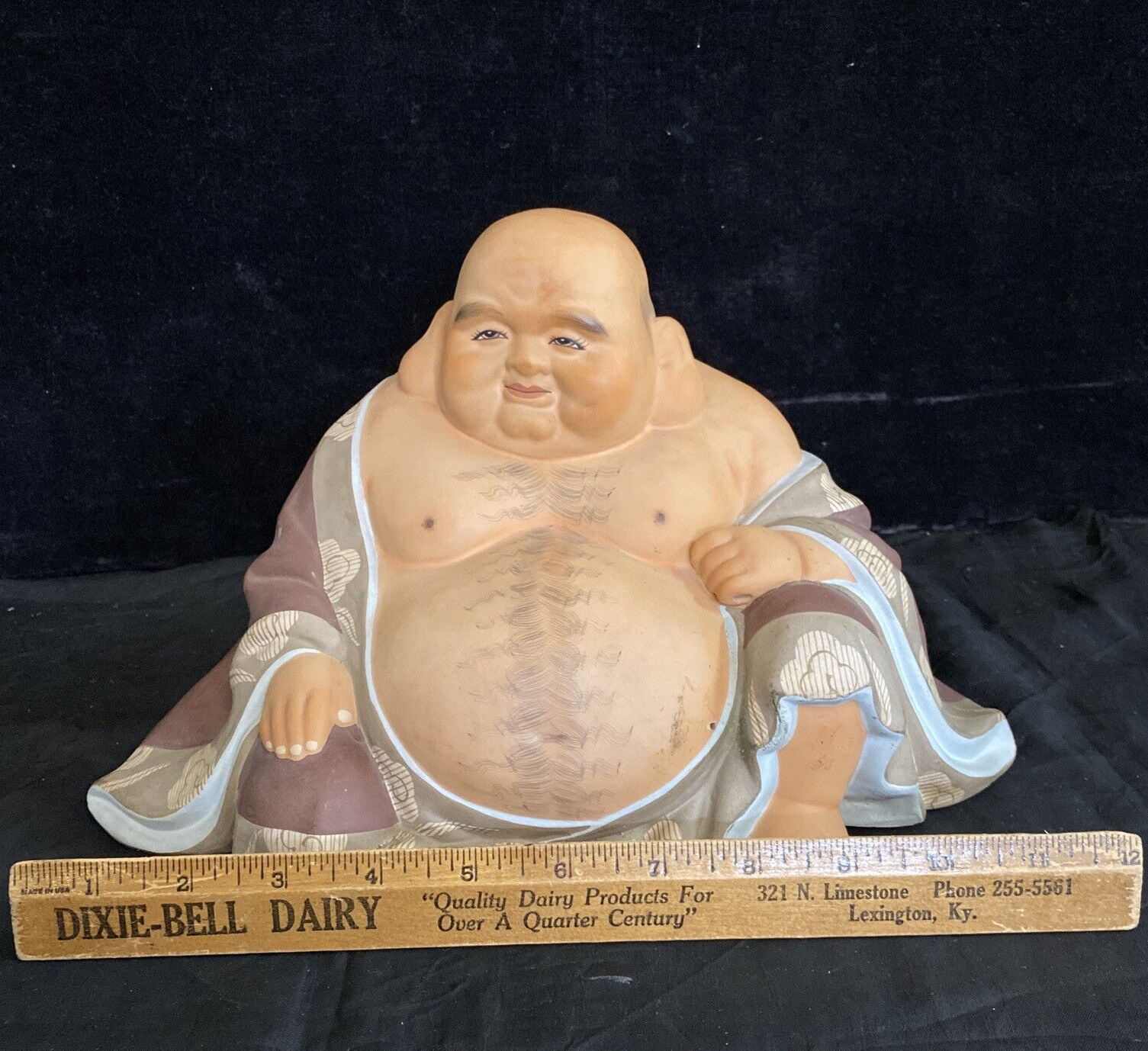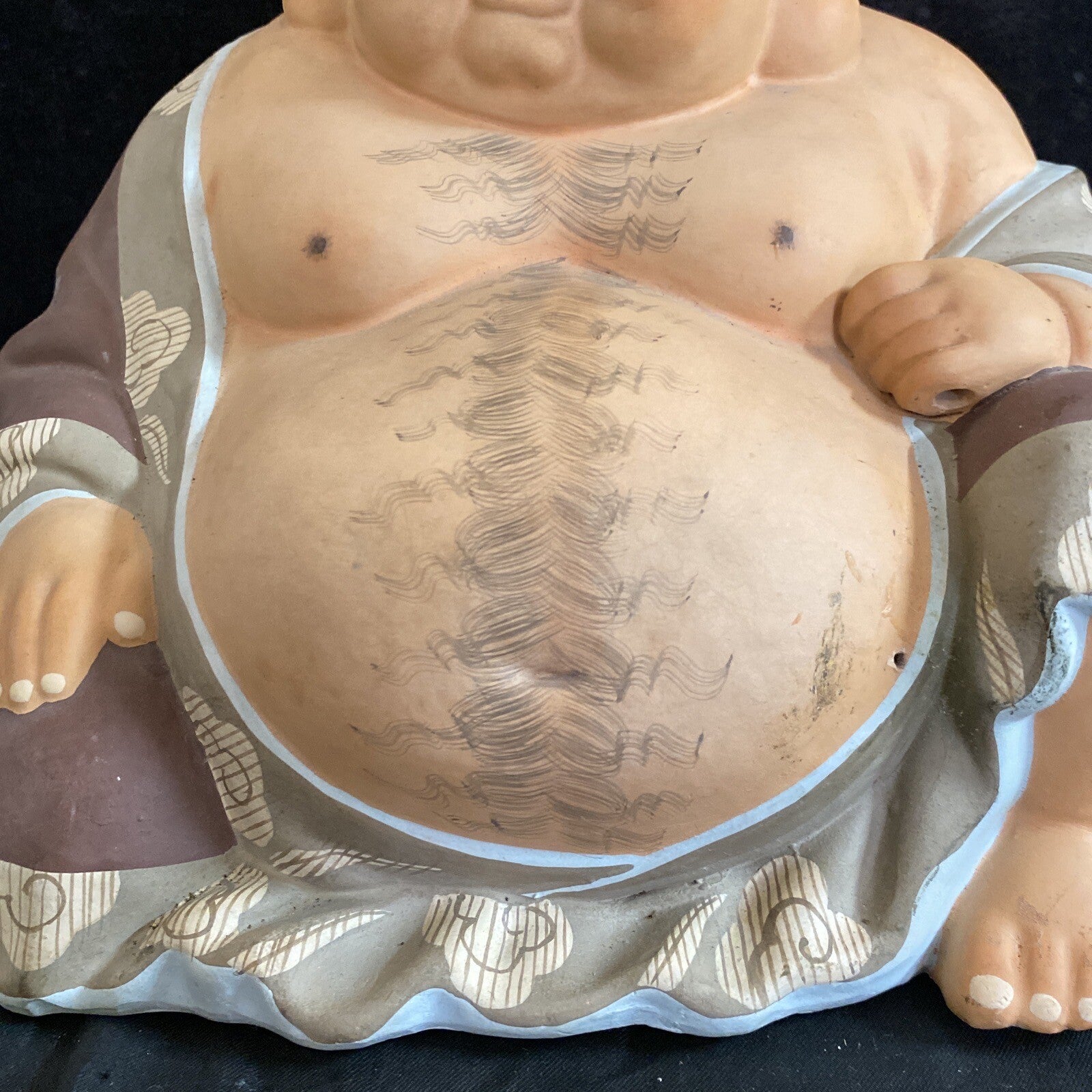 VTG Hakata Mimasu Doll Japan Large 12" Hand Painted Clay Buddha
