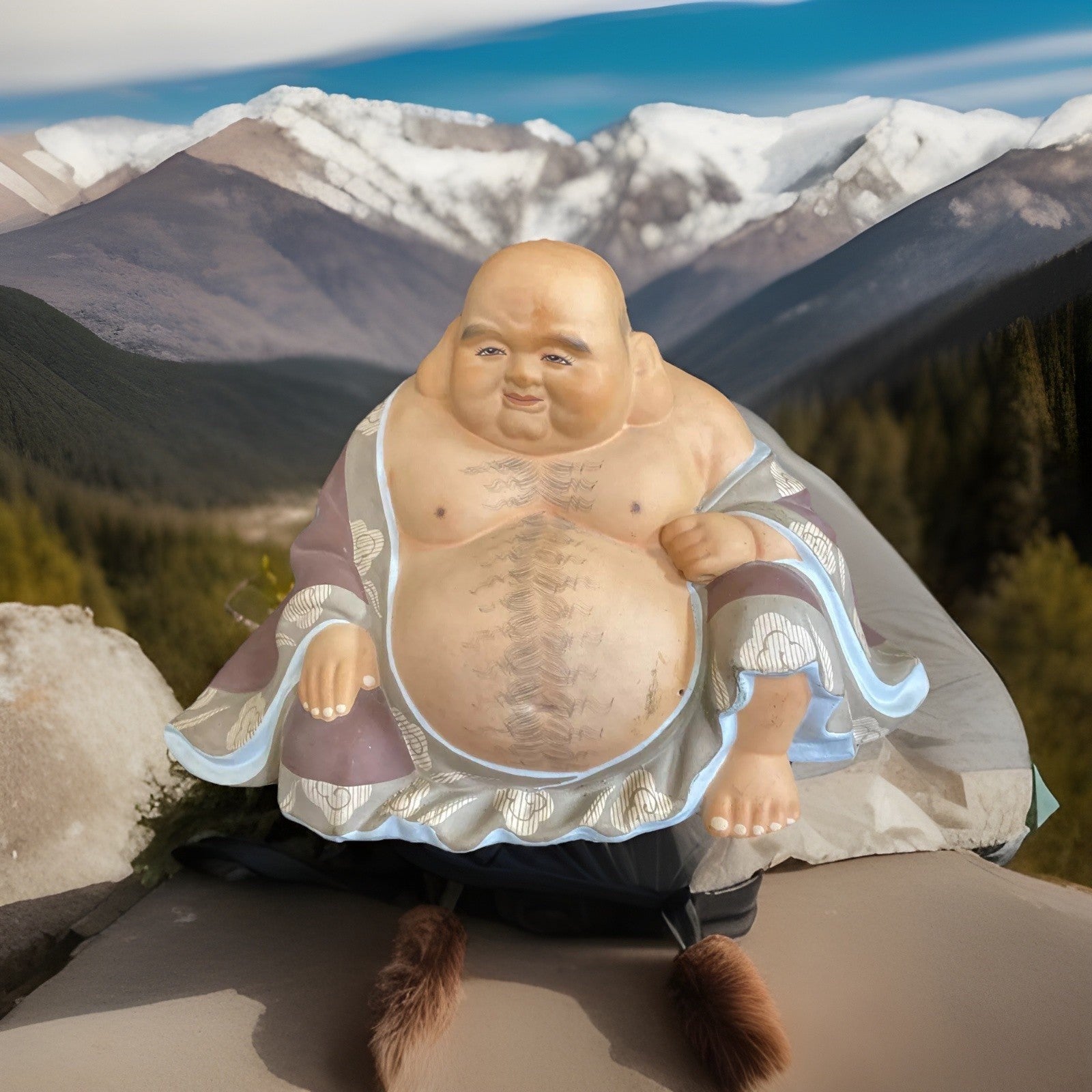 This vintage handmade sculpture from Japan features a serene Buddha figure, standing at 7 1/2" tall and crafted from high-quality clay. The item is painted with intricate detail and comes from the Hakata Mimasu Doll collection. The sculpture is a beautiful addition to any art collection, and would make a thoughtful gift for those with an interest in Japanese culture and art. With its large size and unique design, this sculpture is sure to be a conversation starter in any home or office.