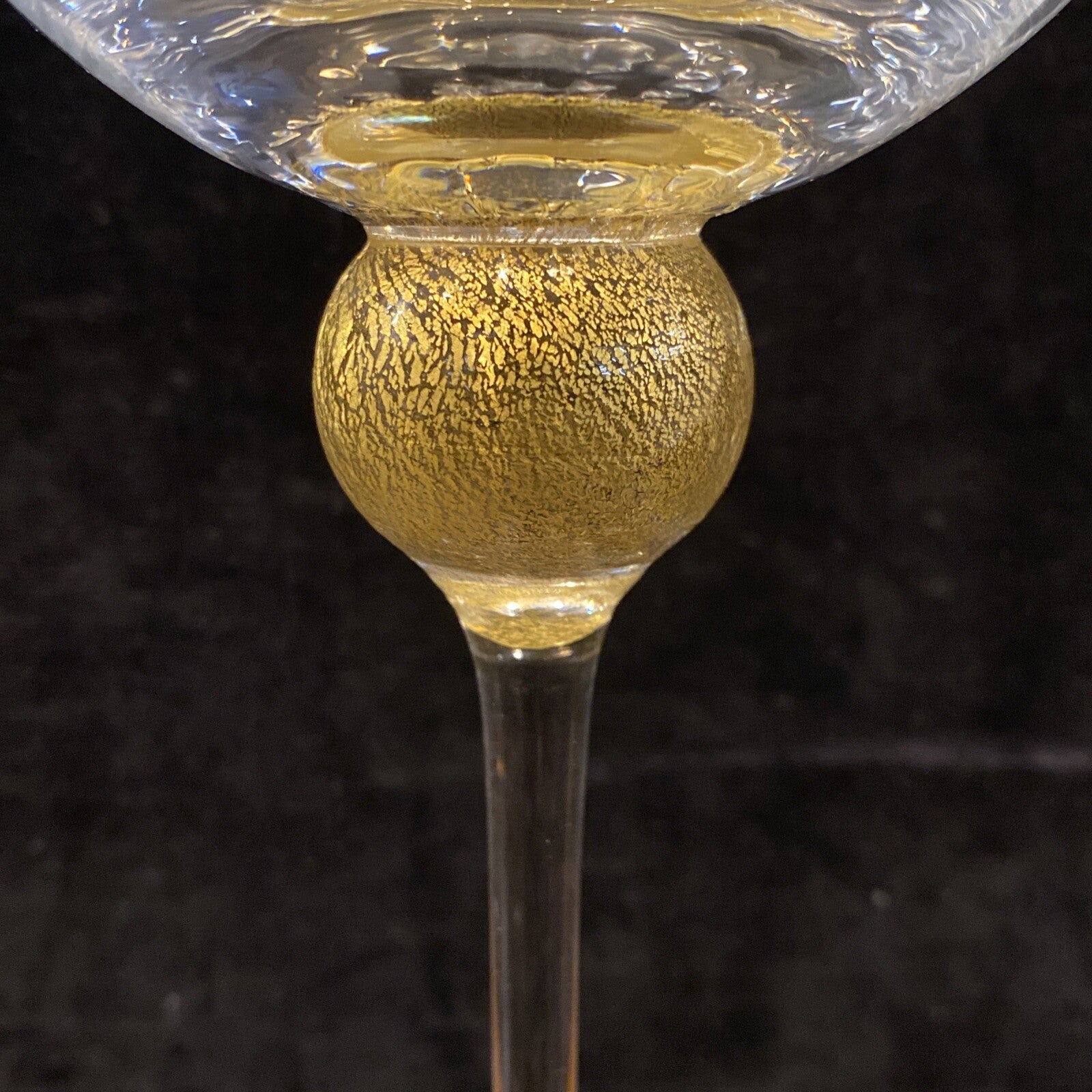 Vtg Handmade Venetian Wine Glass 9.5" Gold Leaf Ball top of Stem Signed BH323