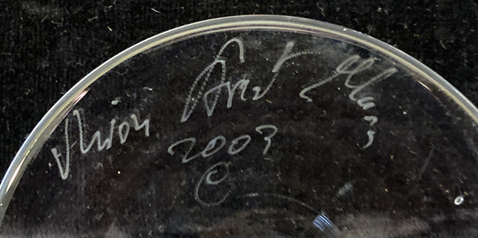 Beautiful hand-formed wine glass made in Venice, Italy. Accented with 24K gold leaf. Signed. 9.5" tall x 4" diameter