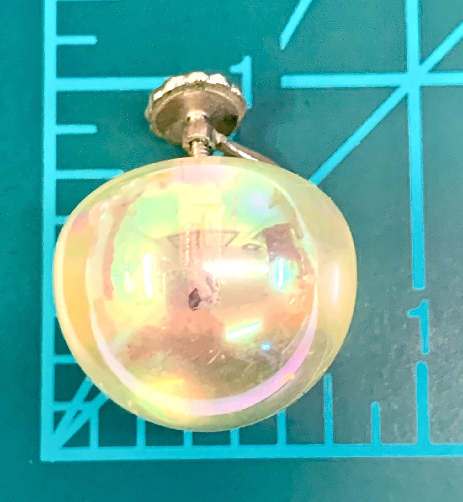 VTG.RICHELIEU WHITE IRIDESCENT LUCITE SCREW BACK EARRINGS