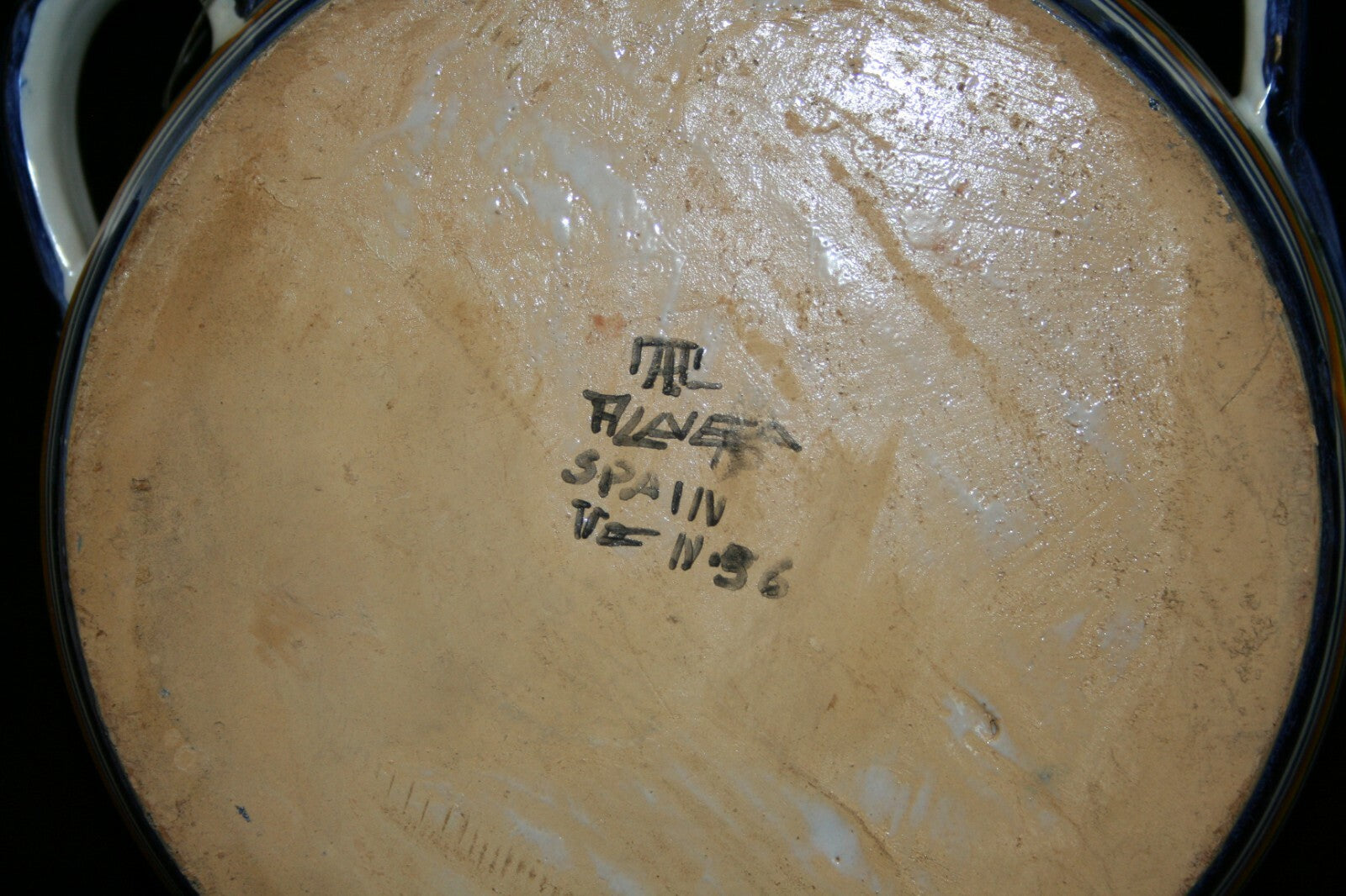 Vtg Spanish Majolica Wine Water Canteen Pilgrim Flask Pitcher Talavera