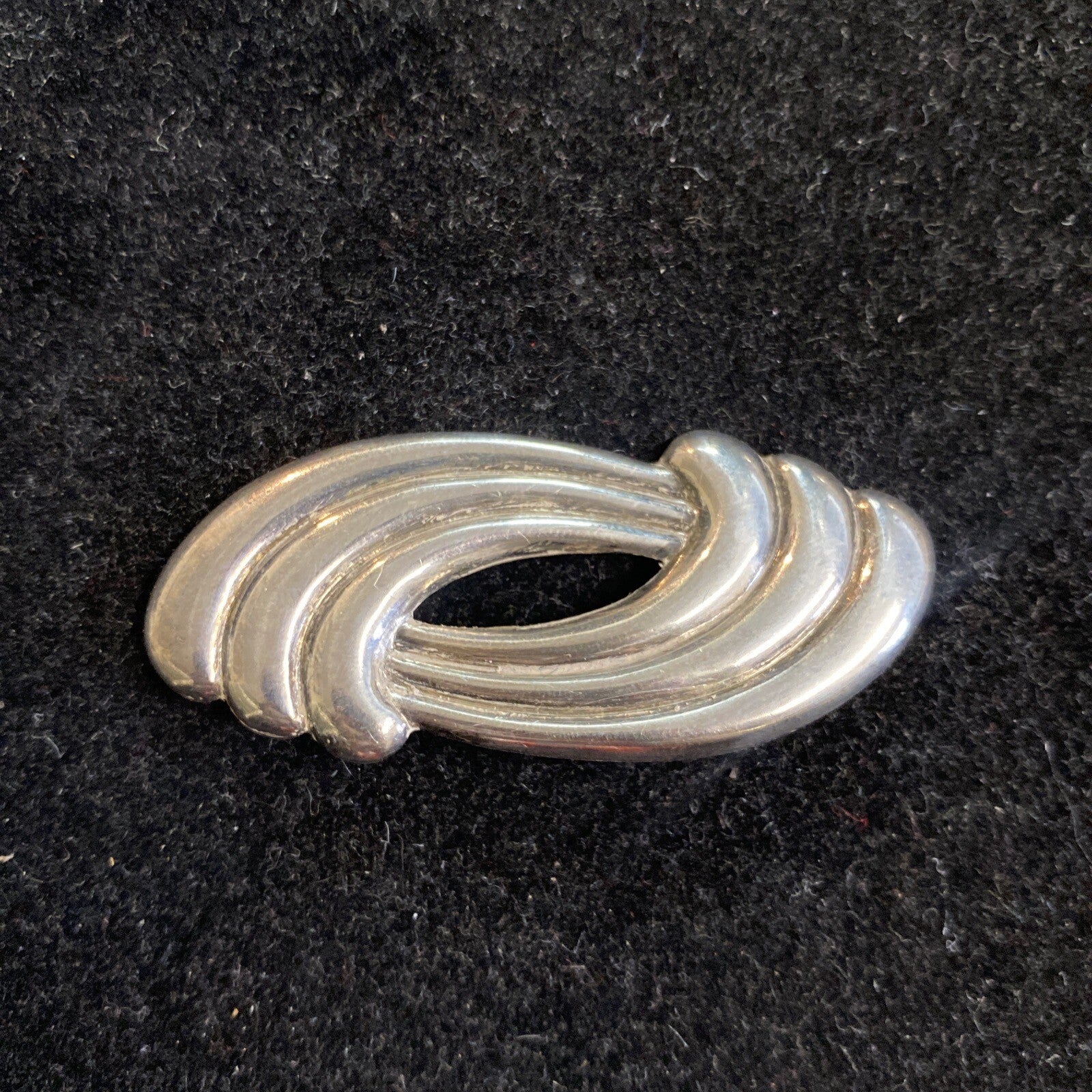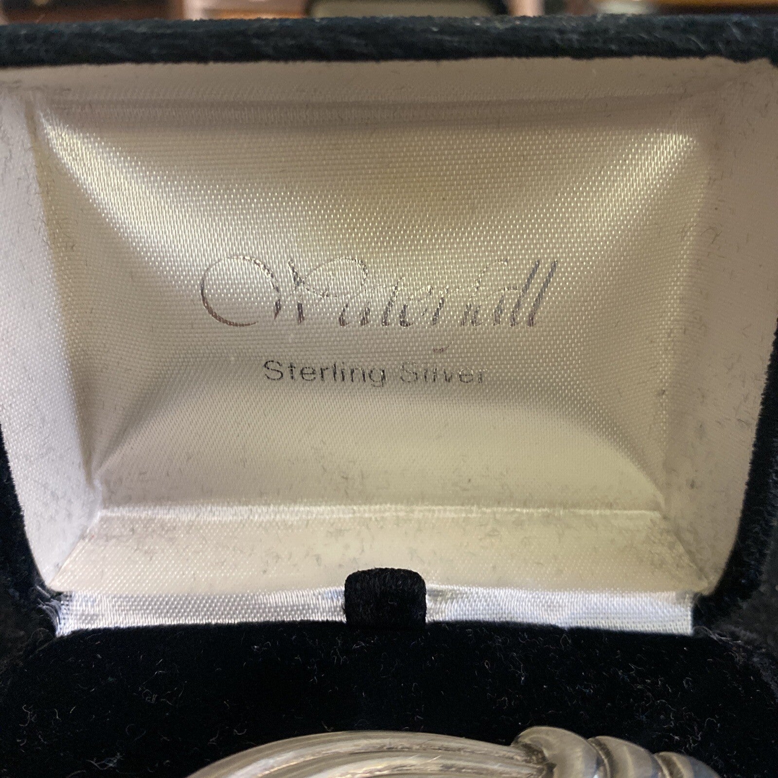 Offered for sale is a vintage sterling silver pin / brooch by Waterfall Jewelers in the original box. The pin measures 2" x 1" and weighs 5.1 g.