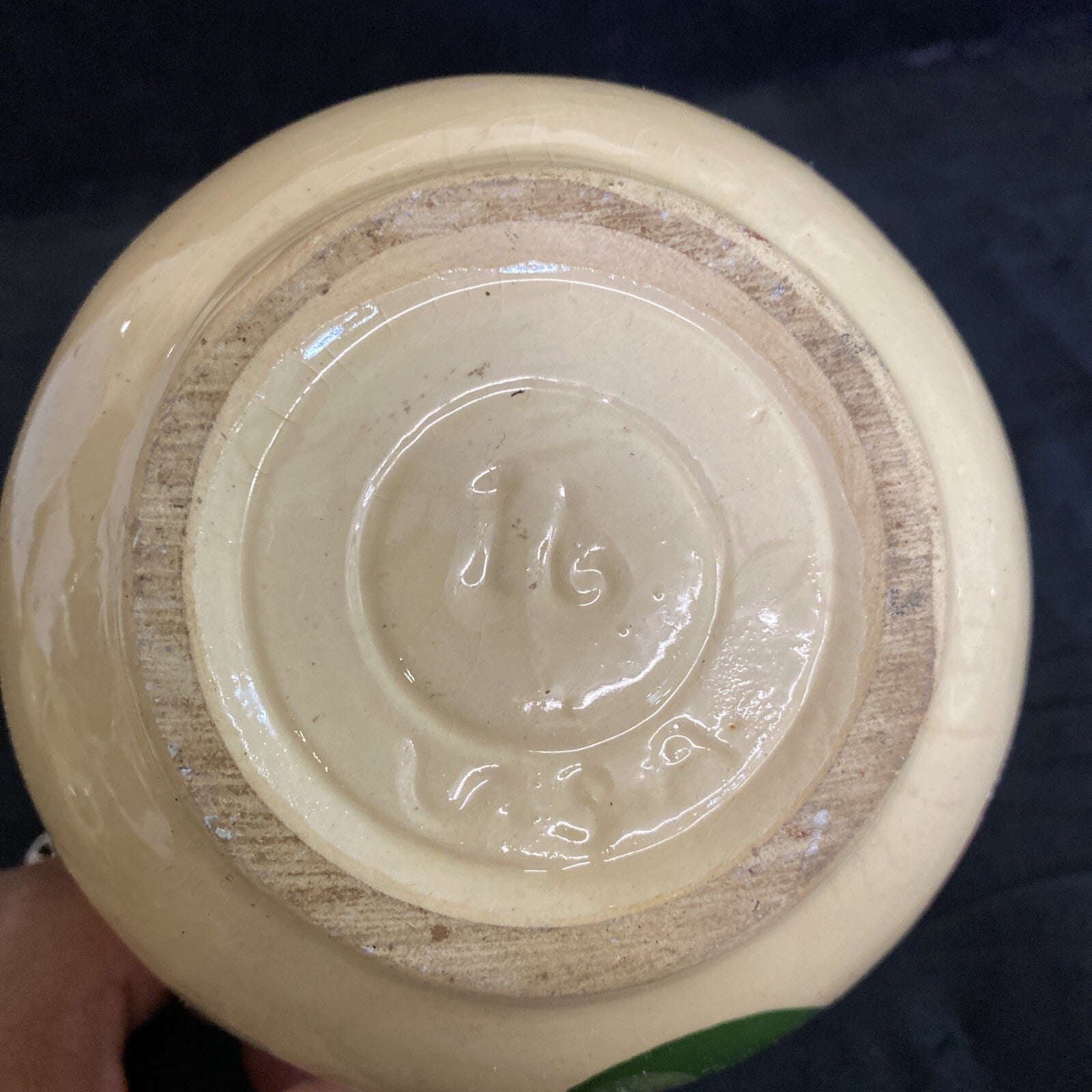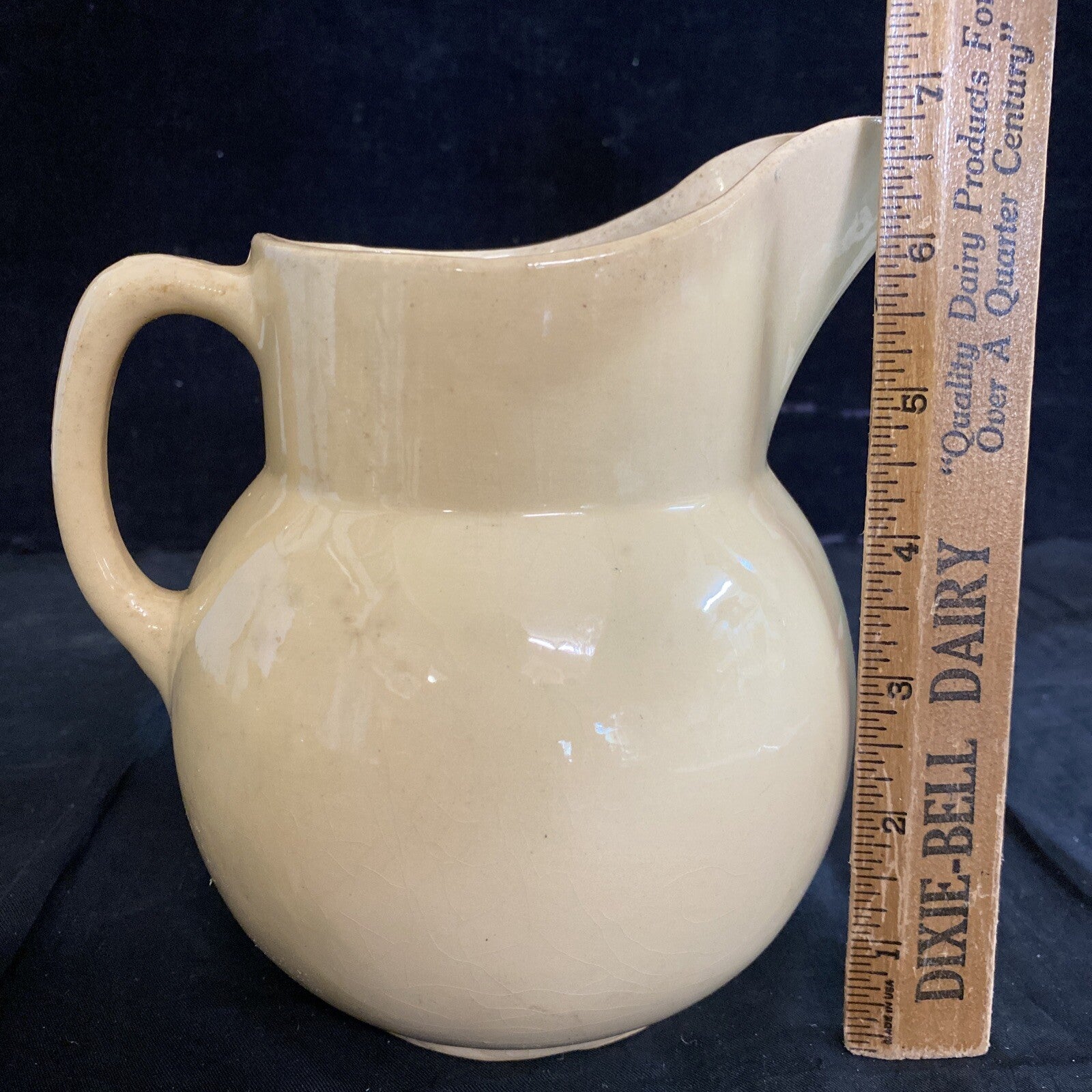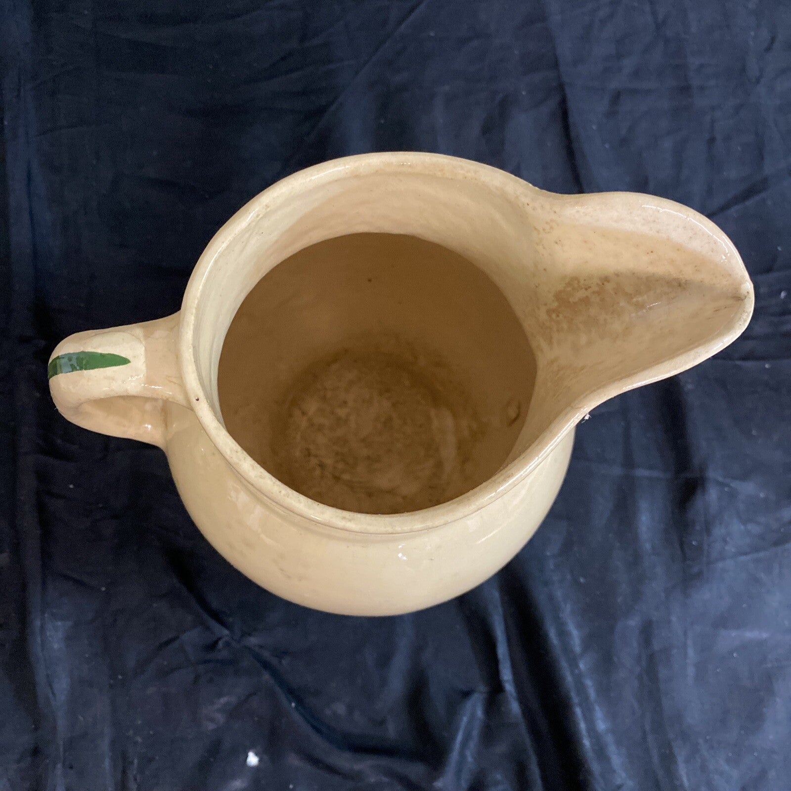 This vintage Watt Ware #16 apple advertising pitcher is a unique addition to any collection. Made of sturdy stoneware material with a beautiful yellow color, this pitcher is perfect for serving your favorite beverage.