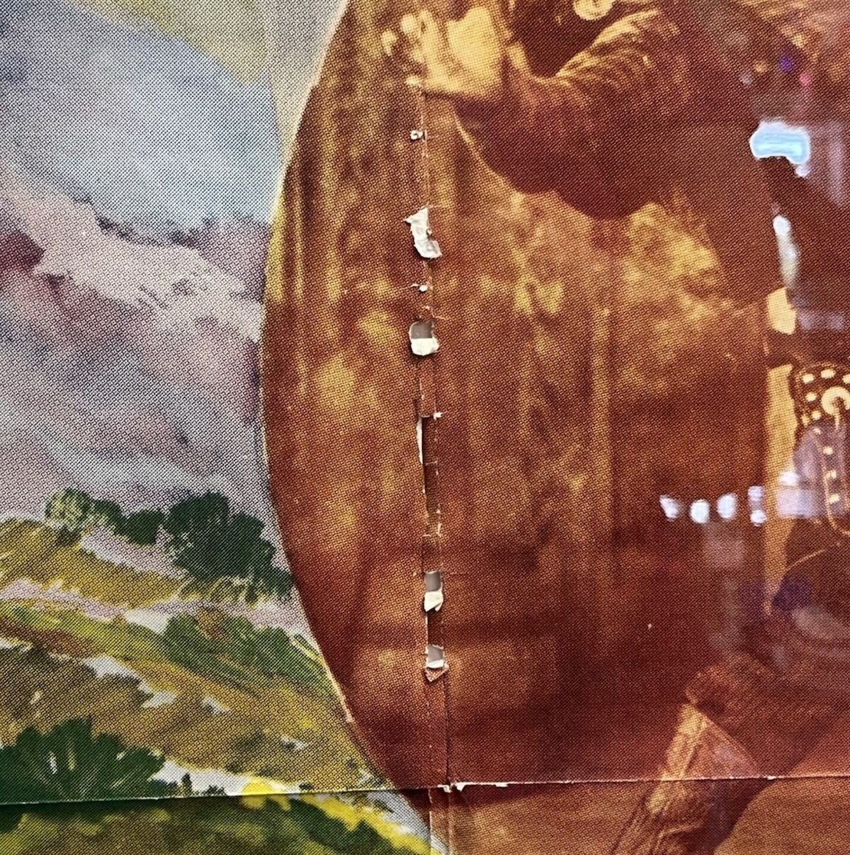 (1) "When a Man Sees Red," starring Buck Jones, a Realart Picture, small tears and holes near edges and central vertical axis, both with typical creasing to sheet, each sight: approx 40.5"h, 26.5"w, overall: approx 42.25"h, 28.25"w, 25.5lbs total